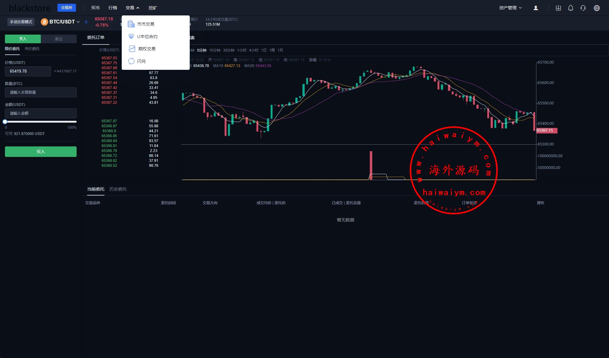 新版海外交易所系统全新开发无需ES繁琐安装,全币种可控制自定义生成K线