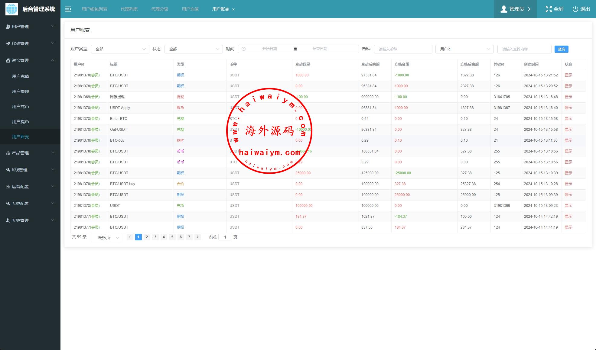 海外交易所系统/永续合约交割合约/K线控制/质押理财