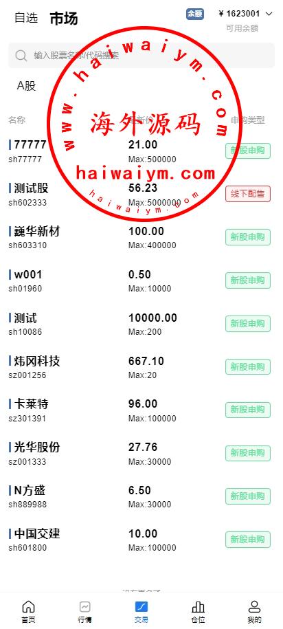 A股股票交易系统/新股申购/证券交易/前端VUE