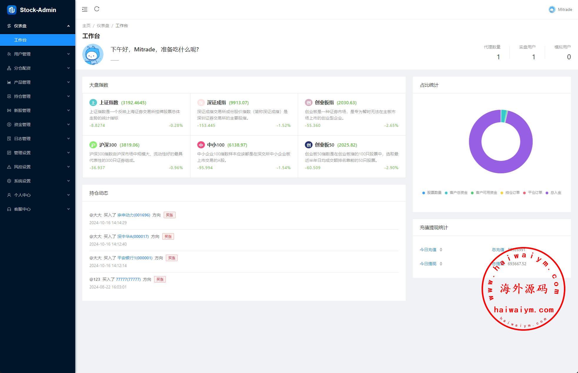 系统前端单a股交易、新股申购、大宗交易等功能前端、代理后台、总后台VUE开发,服务端java开发带纯源码跟教程