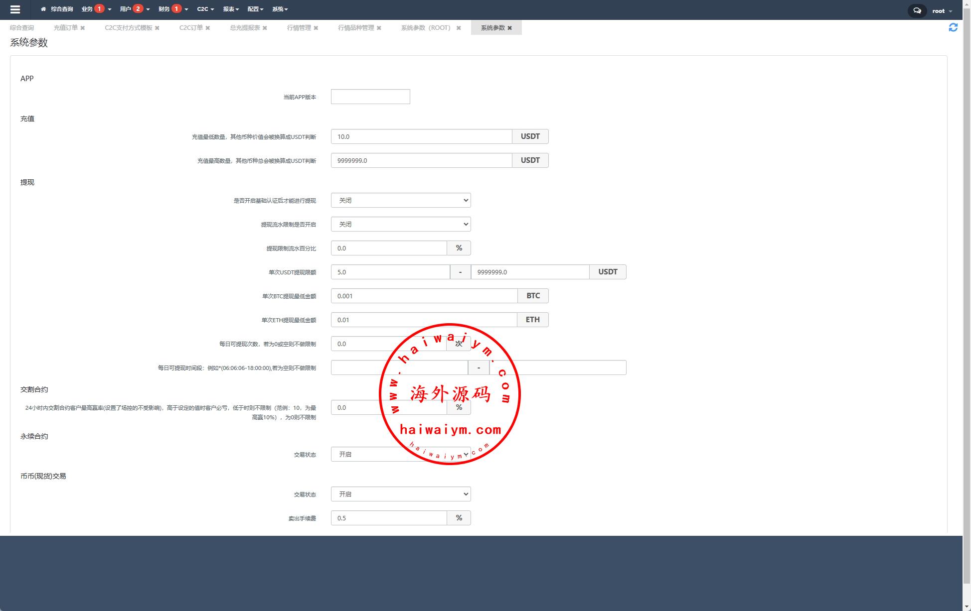 海外交易所系统/合约/期权/质押/秒合约/插针控制/申购