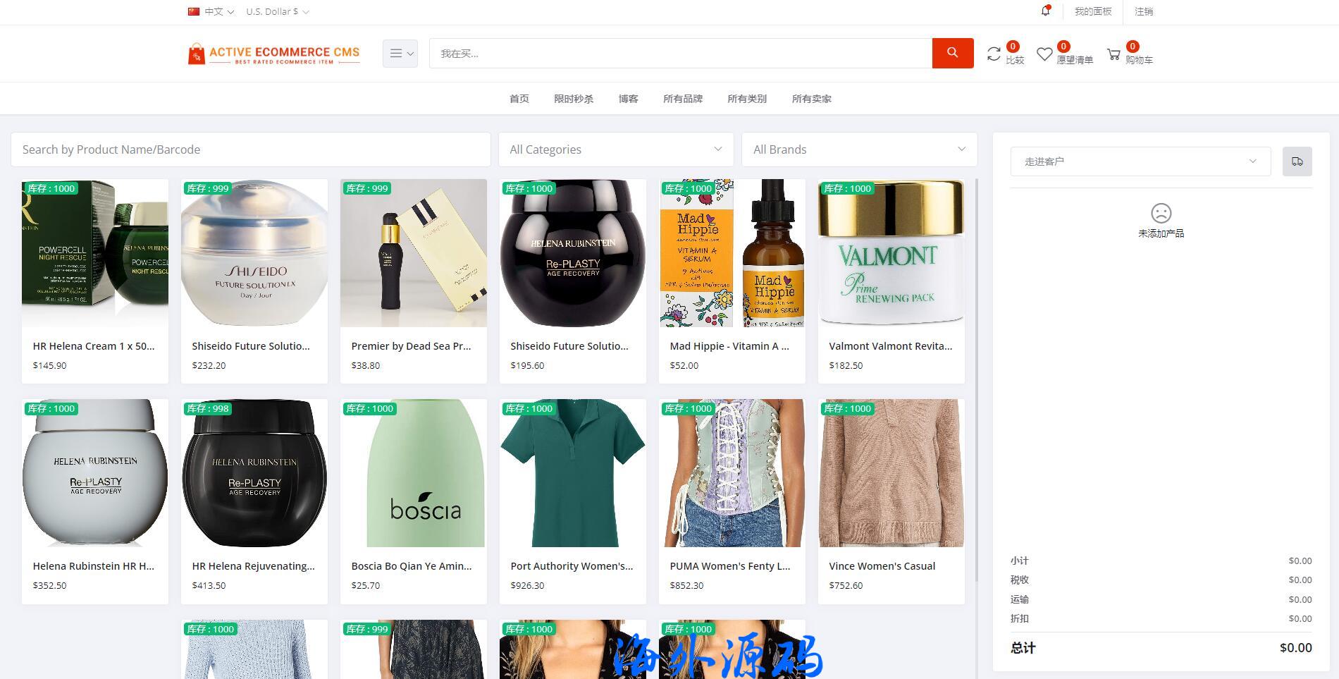 多语言海外电商系统,前端多种语言切换,支持后台添加任意语言