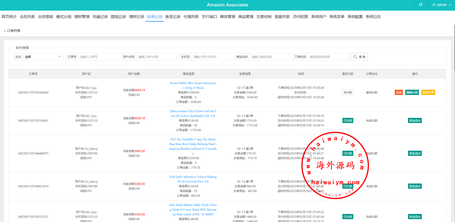 海外商城抢单刷单系统/预设订单/重置订单/签到