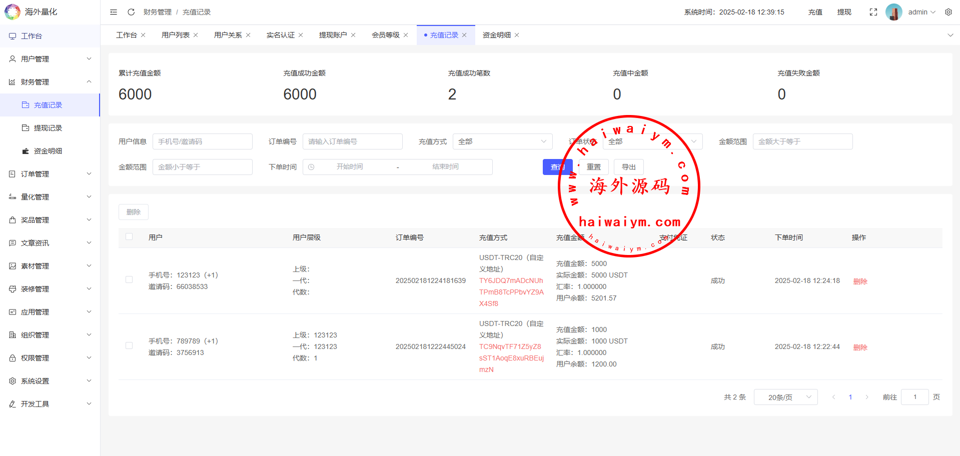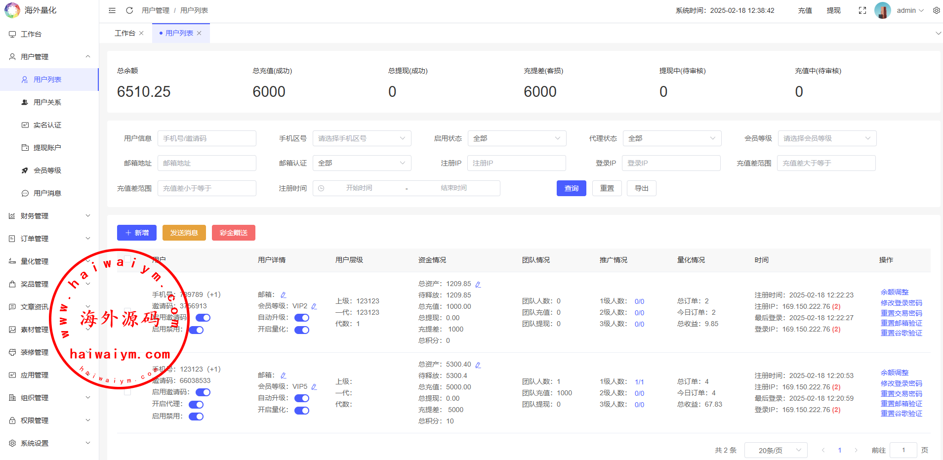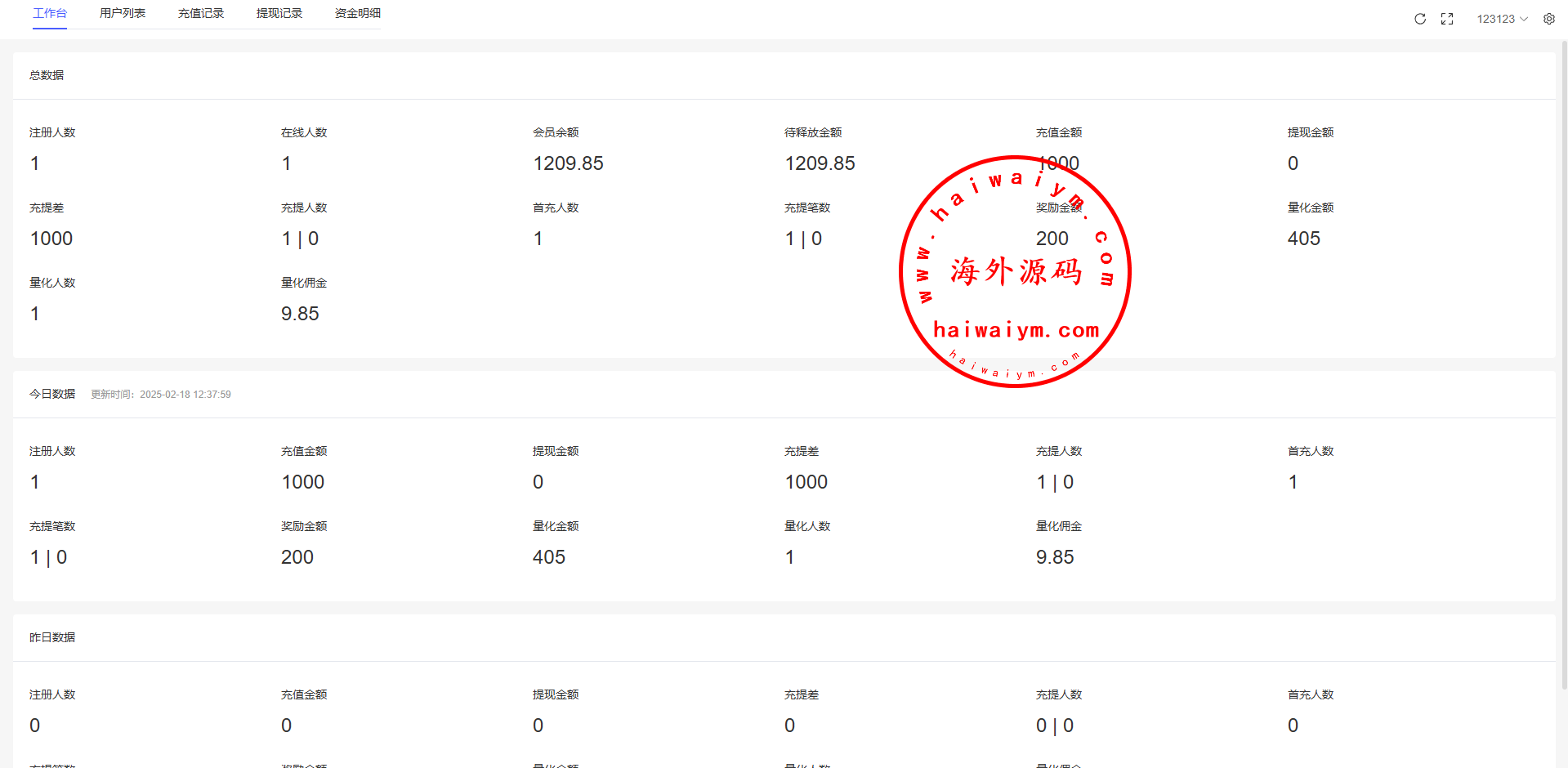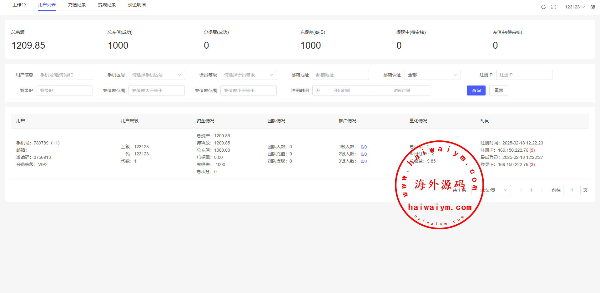 19、代理线功能,后端开启用户为代理,即可登录代理端查看代理下级用户情况