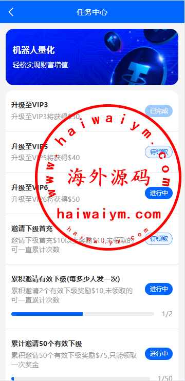 2、根据法规需求,仅支持三级分销机制,用户邀请朋友能获得对应百分比奖励