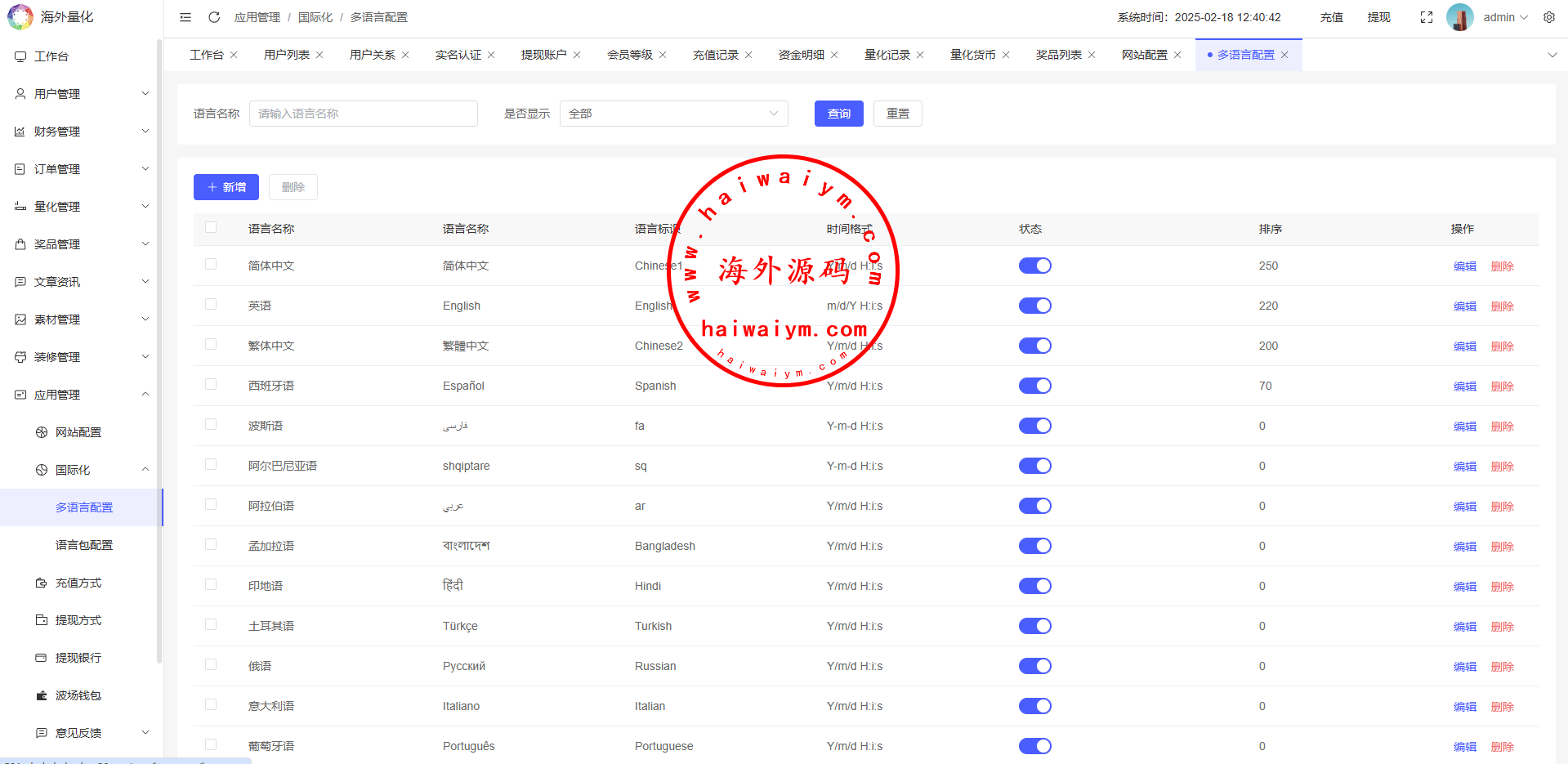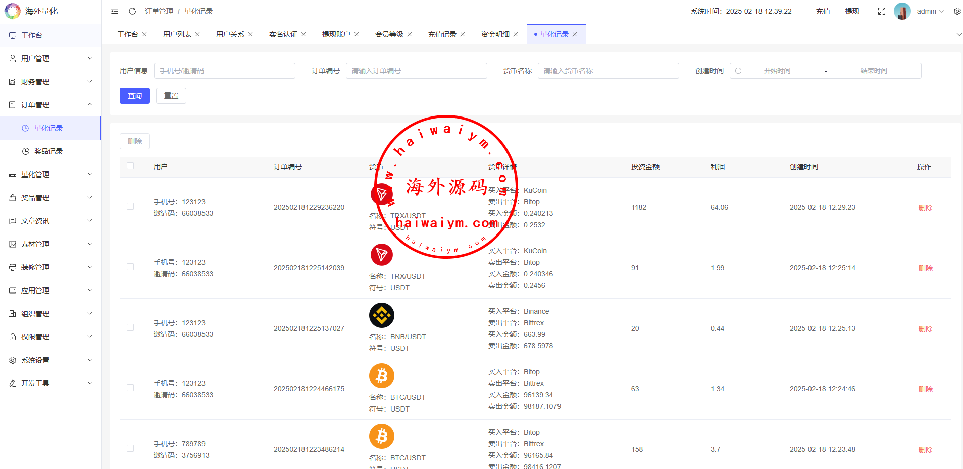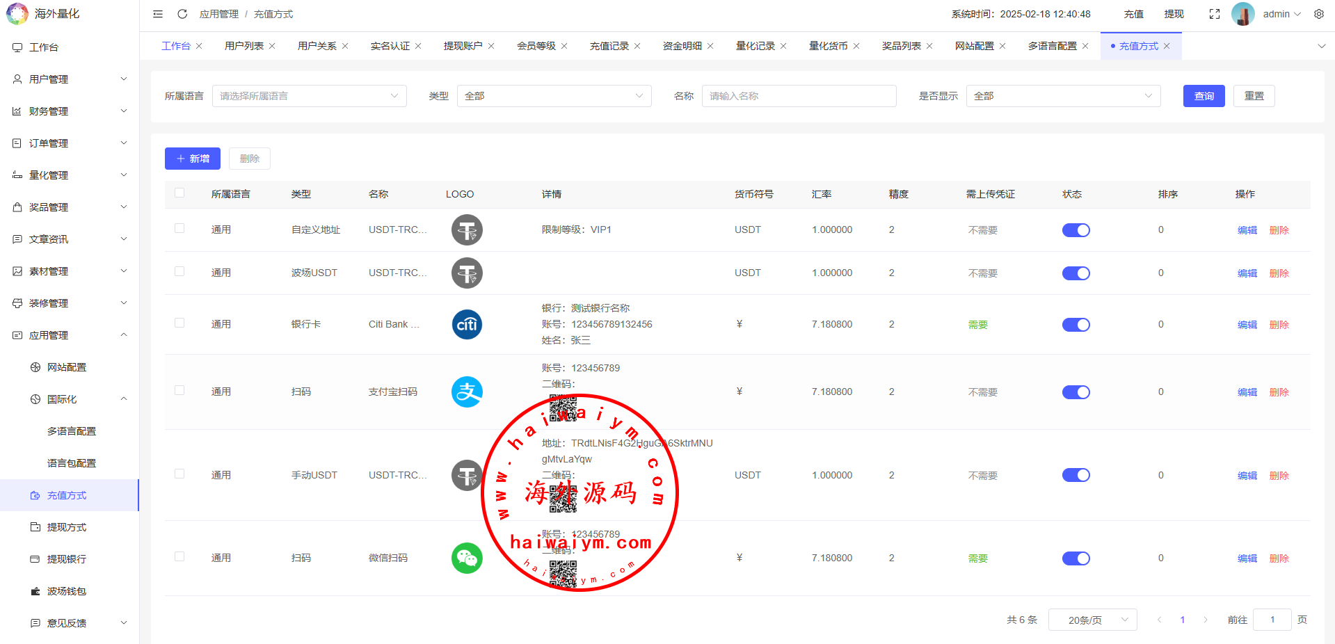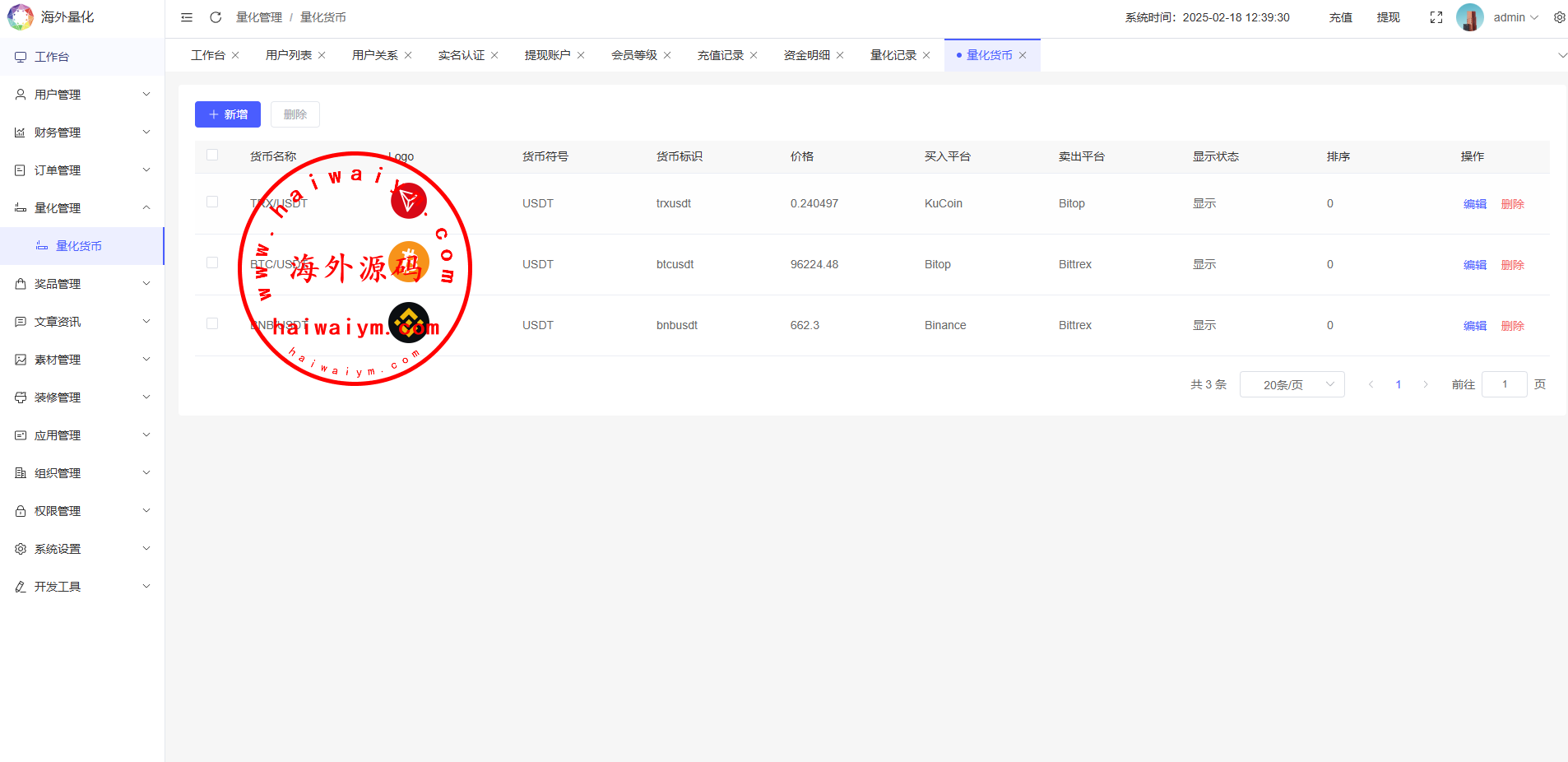 海外虚拟币量化交易系统/多语言量化/USDT自动充值