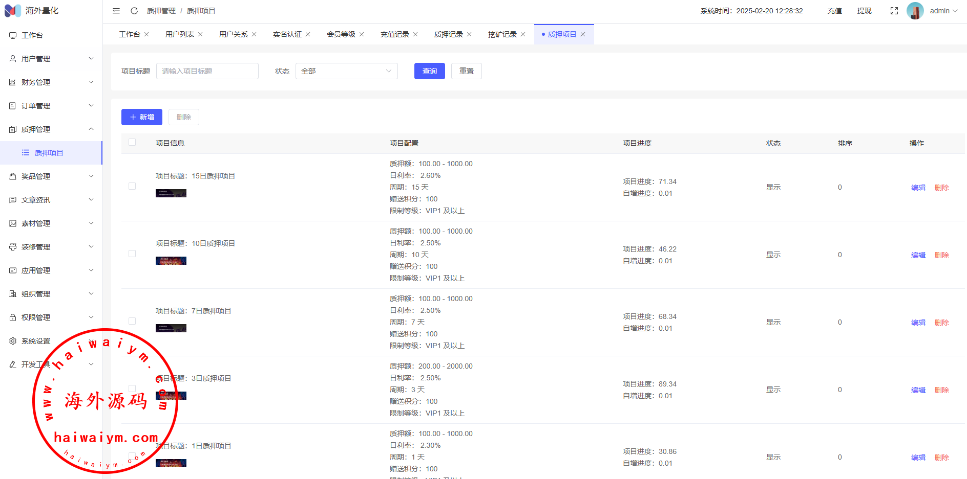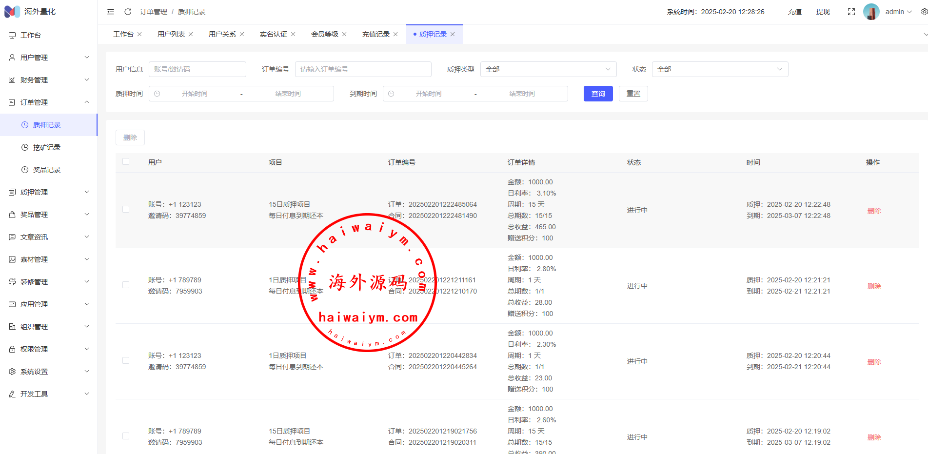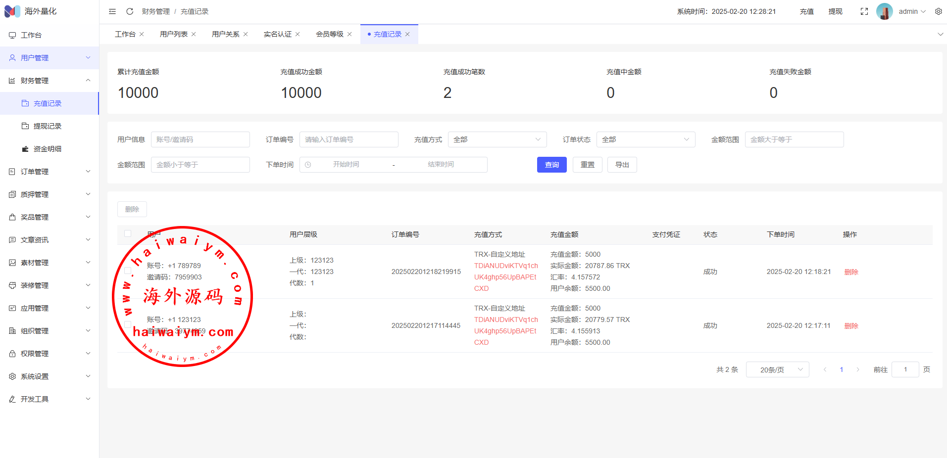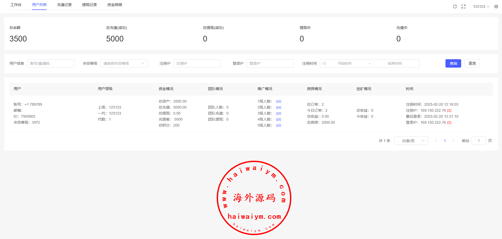 17、代理功能,后台开启用户为代理,即可登录代理端查看代理下级用户情况