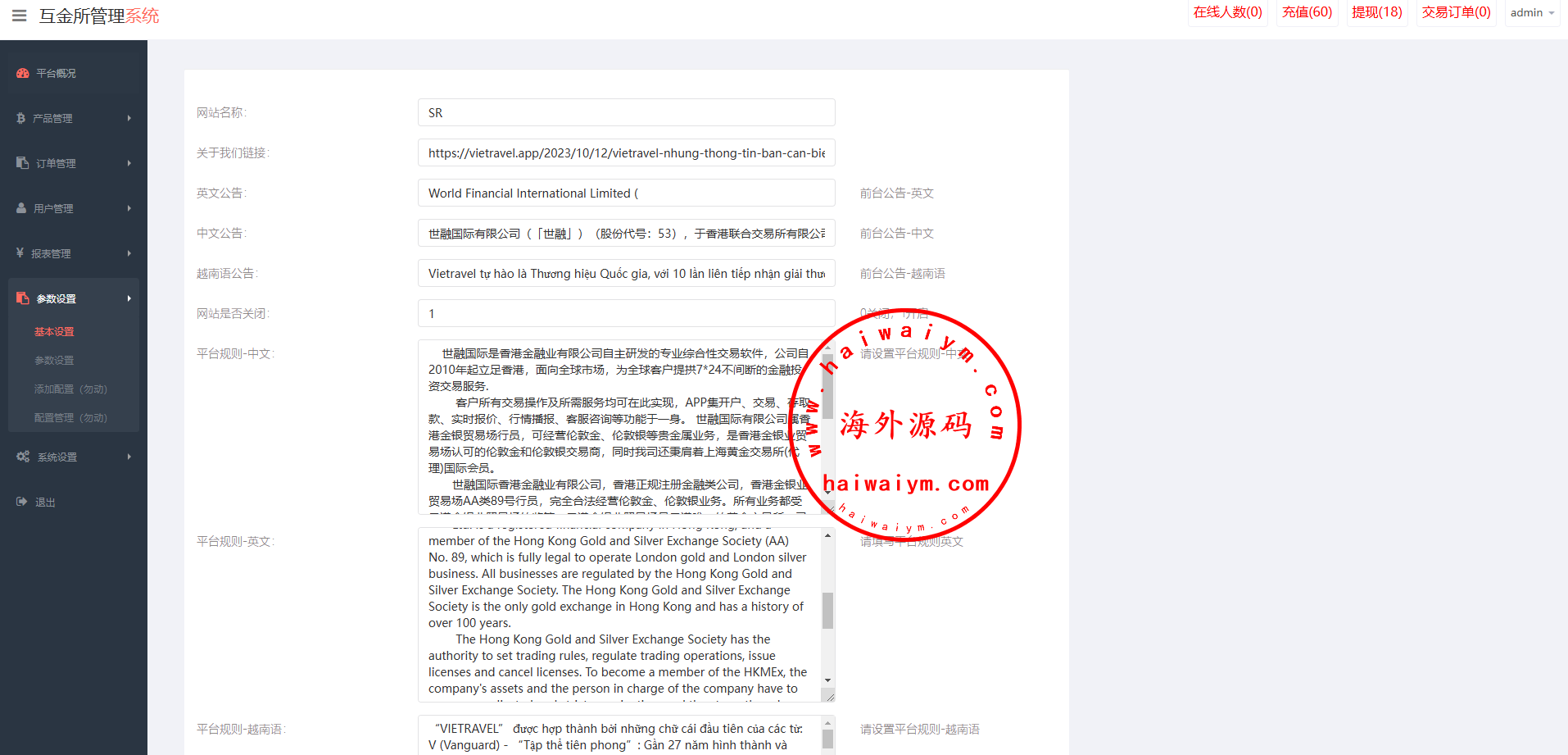 多语言微交易/贵金属外汇虚拟币微盘源码/越南时间盘