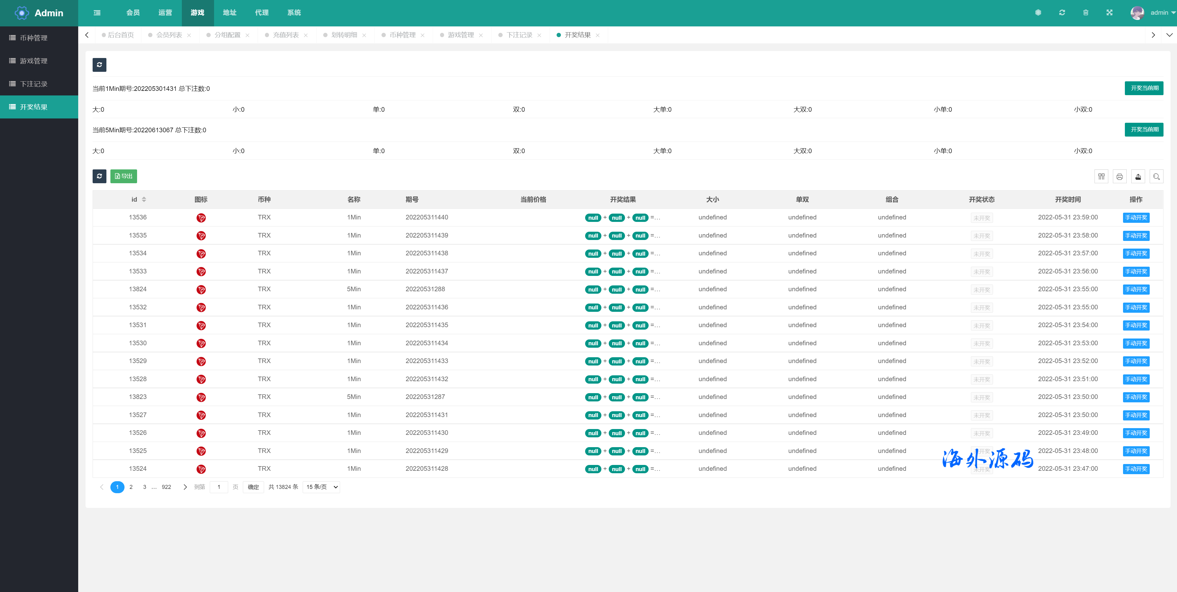支持trx投注竞猜,开奖界面K线正常,开奖方式支持手动、自动开奖
