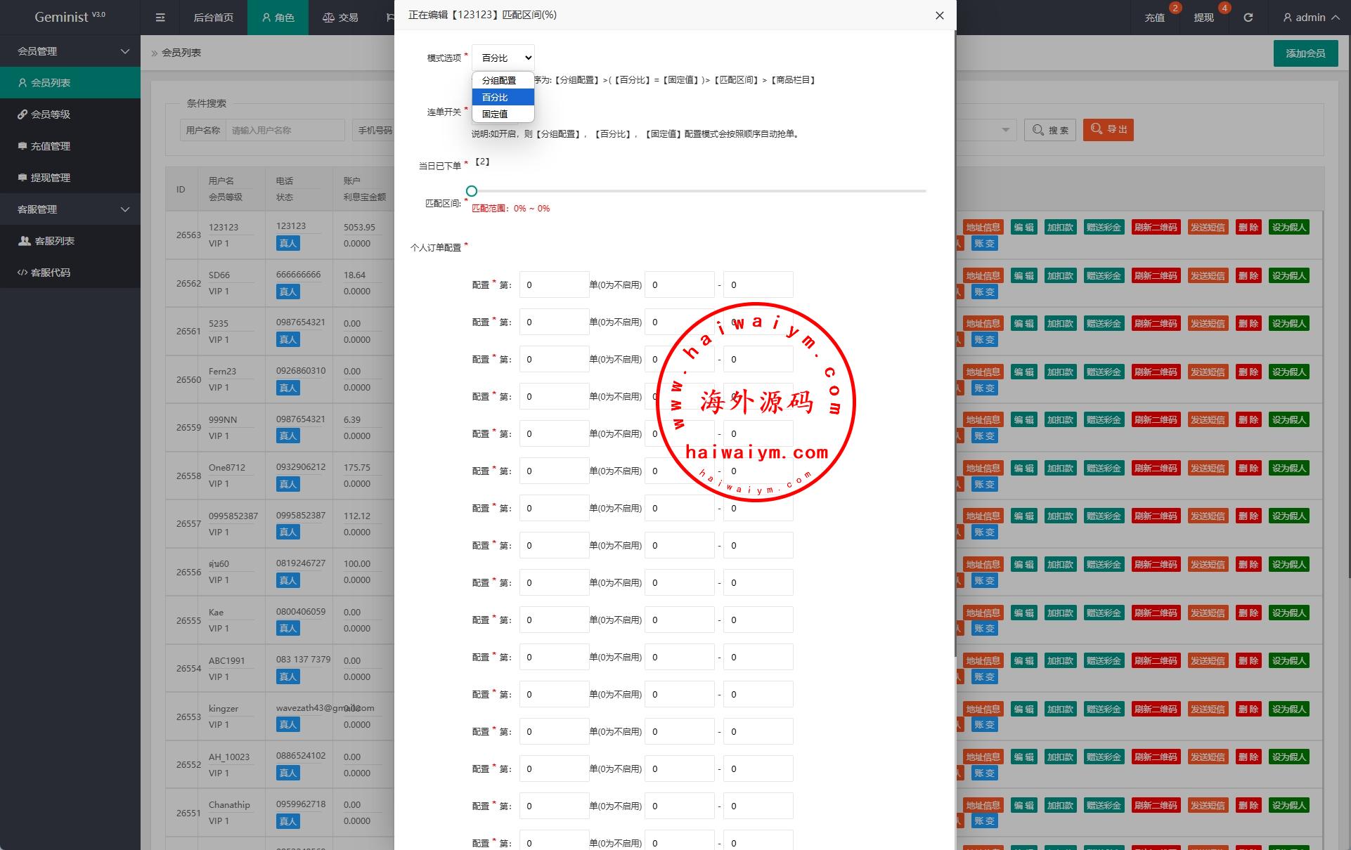 前端定制UI,uniapp开发带多语言,后端php全源码带教程 系统功能支持:支持分组、百分比、固定值、连单设置、假人等功能