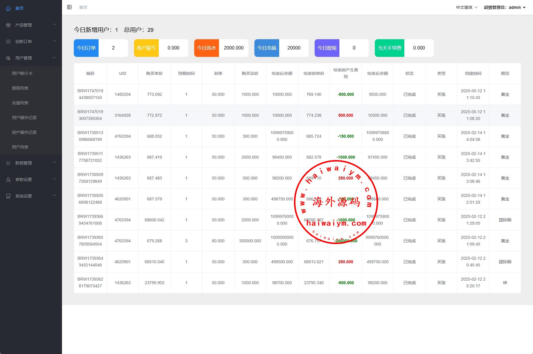 现货微交易系统/微盘时间盘系统/群控单控/前后端VUE