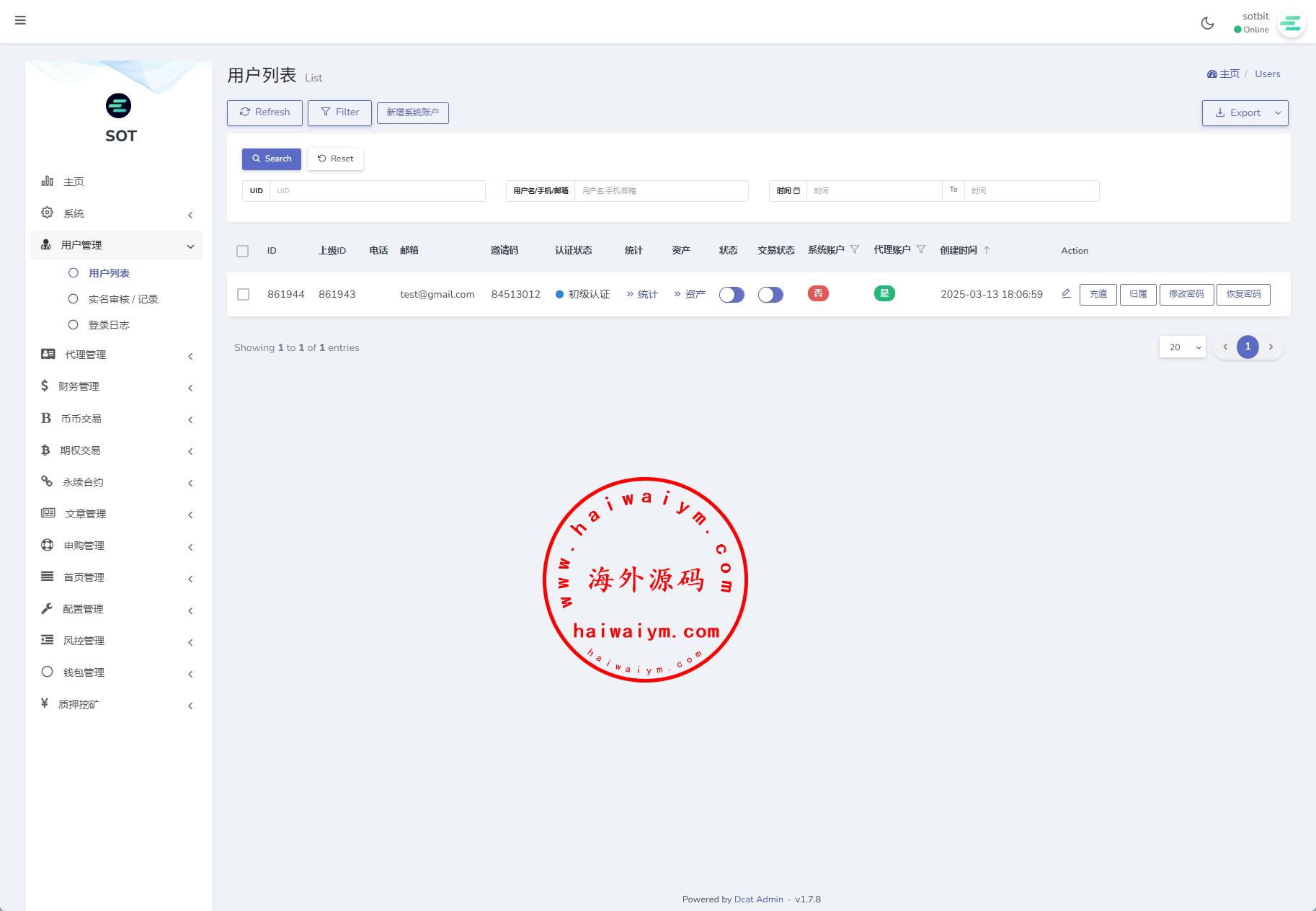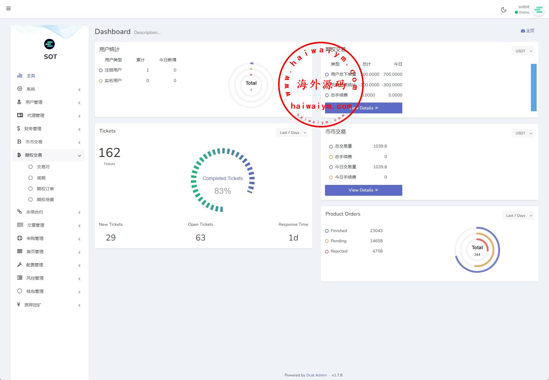 1、平台概况(实时行情、高端K线、BI数据分析、币种统计、用户统计、交易统计、异常用户)
