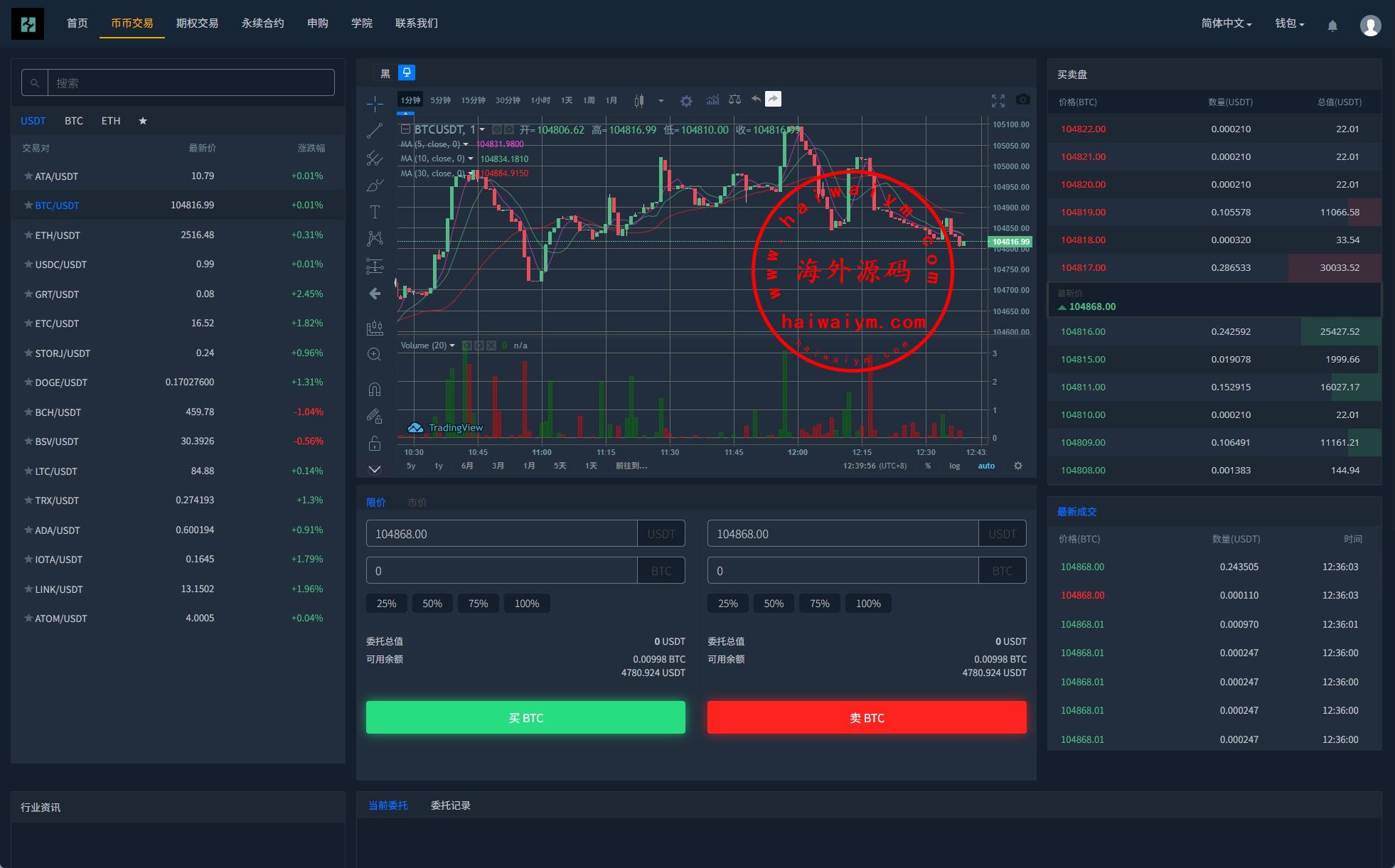 多语言虚拟币交易系统/秒合约交易/伪交易所/时间盘