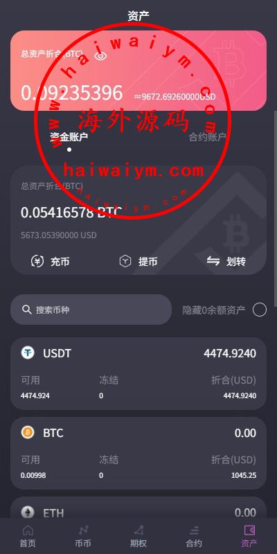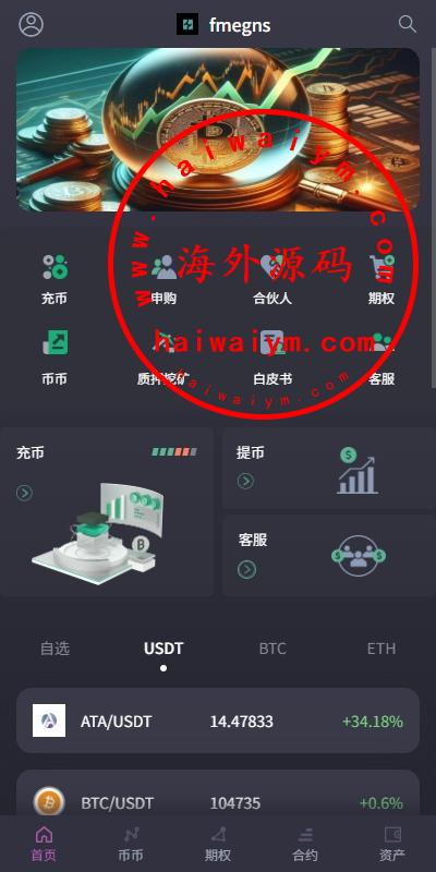 功能:币币交易,挖矿理财,申购新币,系统发行币,合约杠杆,秒合约交易,期权交易,平台币