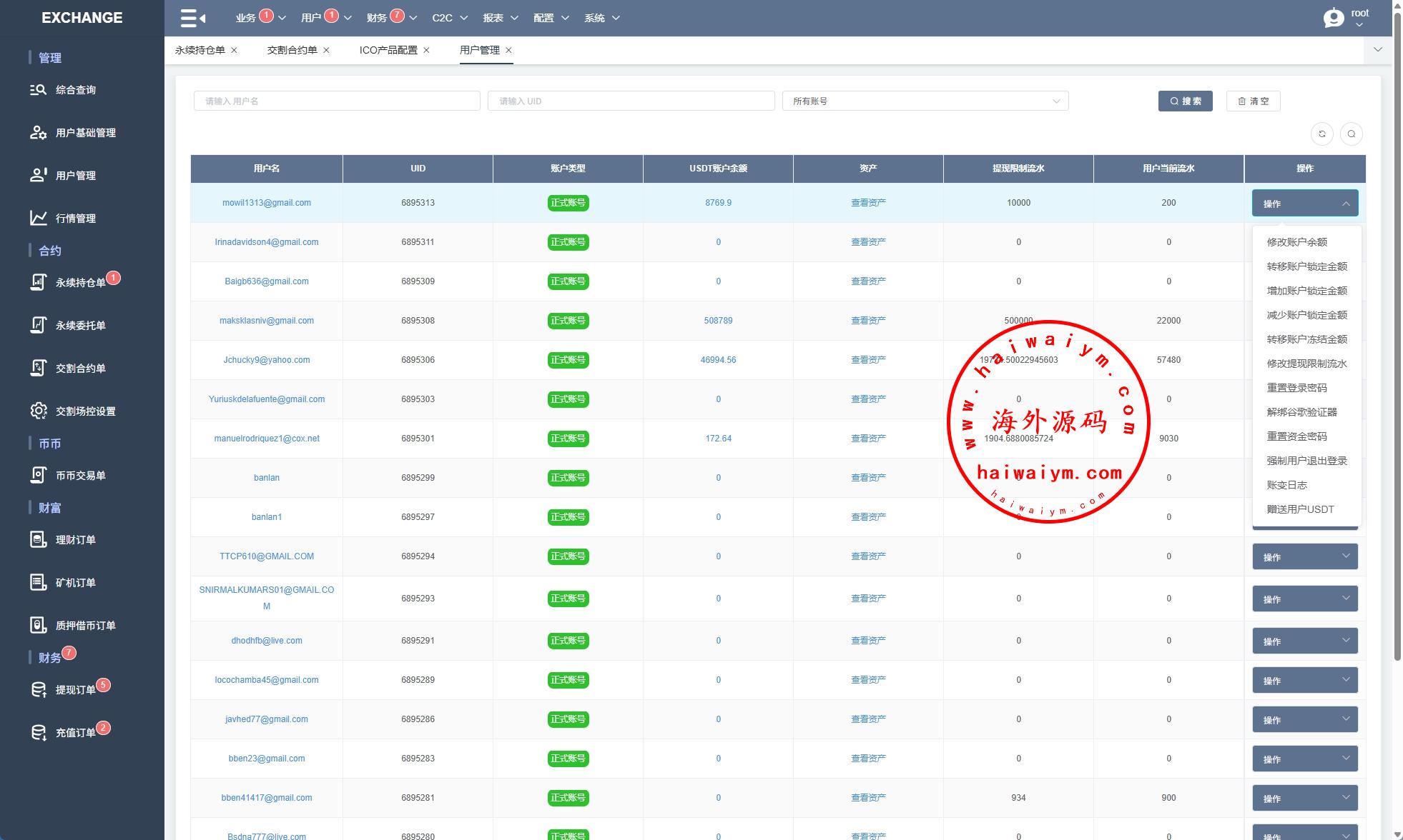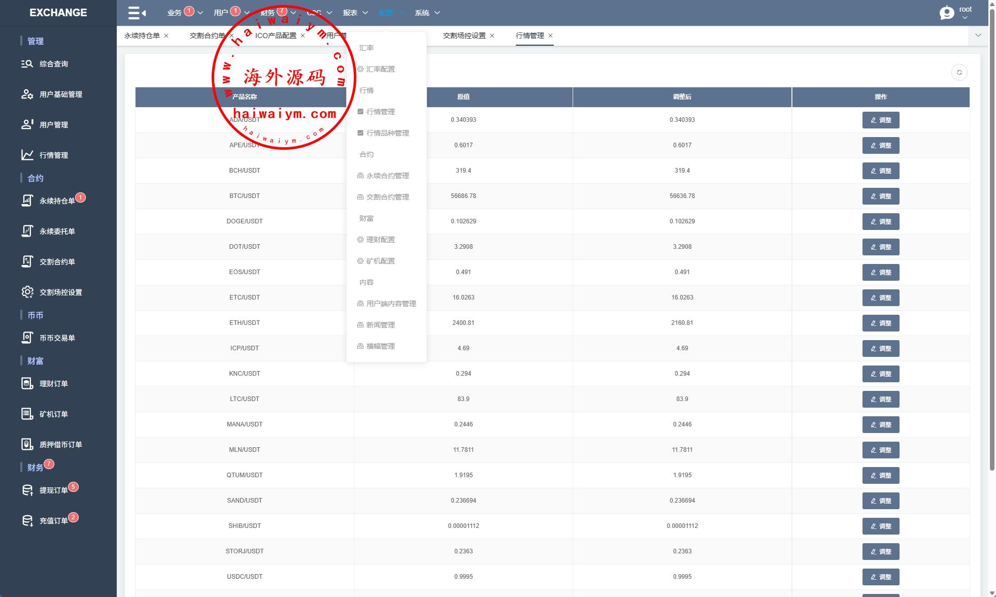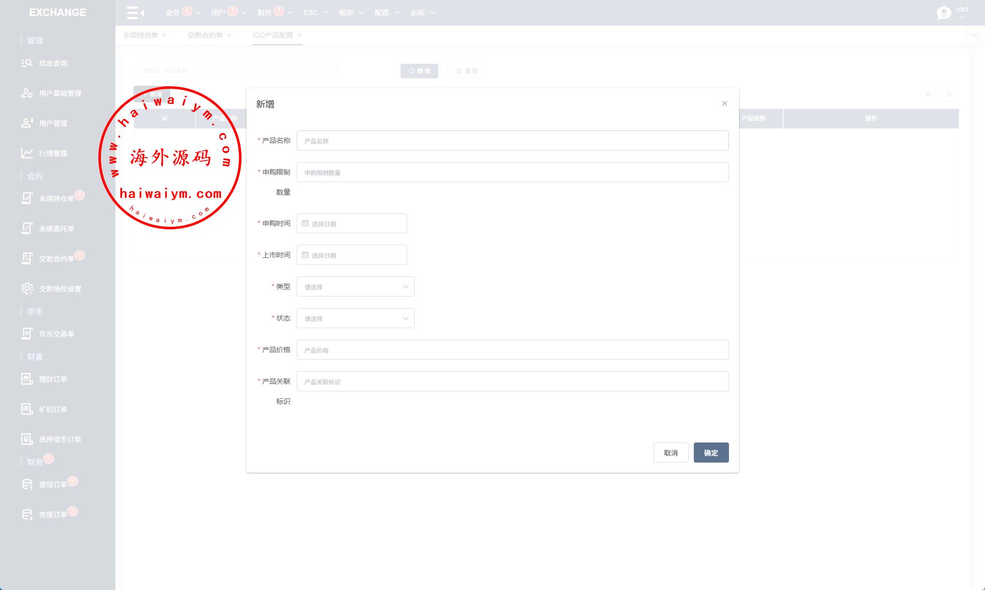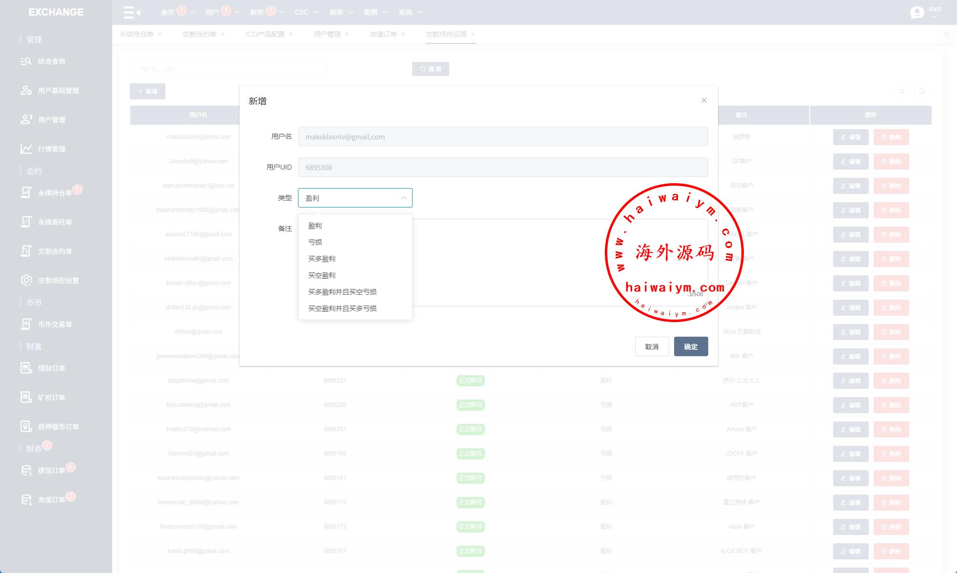 海外交易所系统/合约/期权/质押/秒合约/插针控制/申购