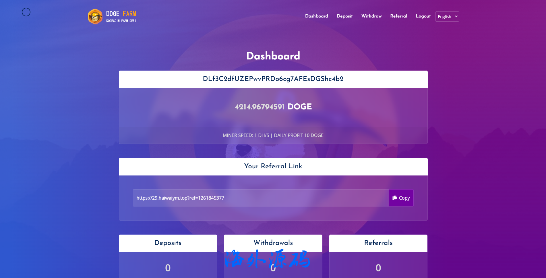 狗狗币DeFi农场,只需要输入钱包地址即可存币生息