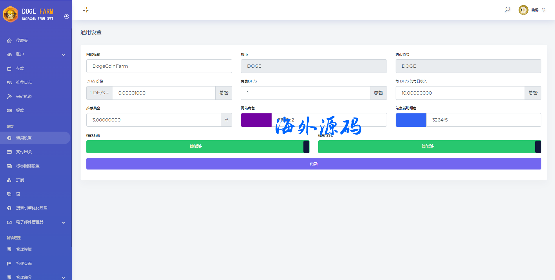 海外狗狗币投资系统/狗狗币DeFi矿场/存币生息