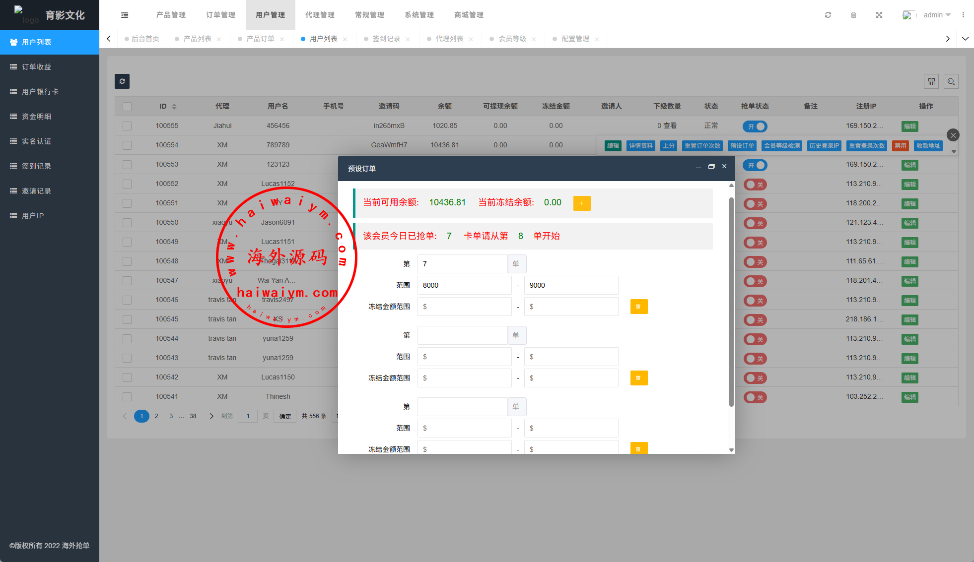 前端uniapp开发,后端php全开源带教程系统功能:抢单开关、预设订单、重置订单、签到、代理等功能
