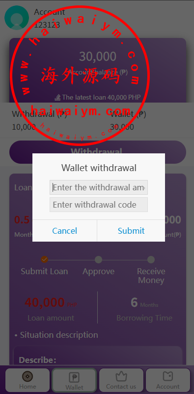 海外贷款平台/小额贷款系统/信用分/合同/提现码