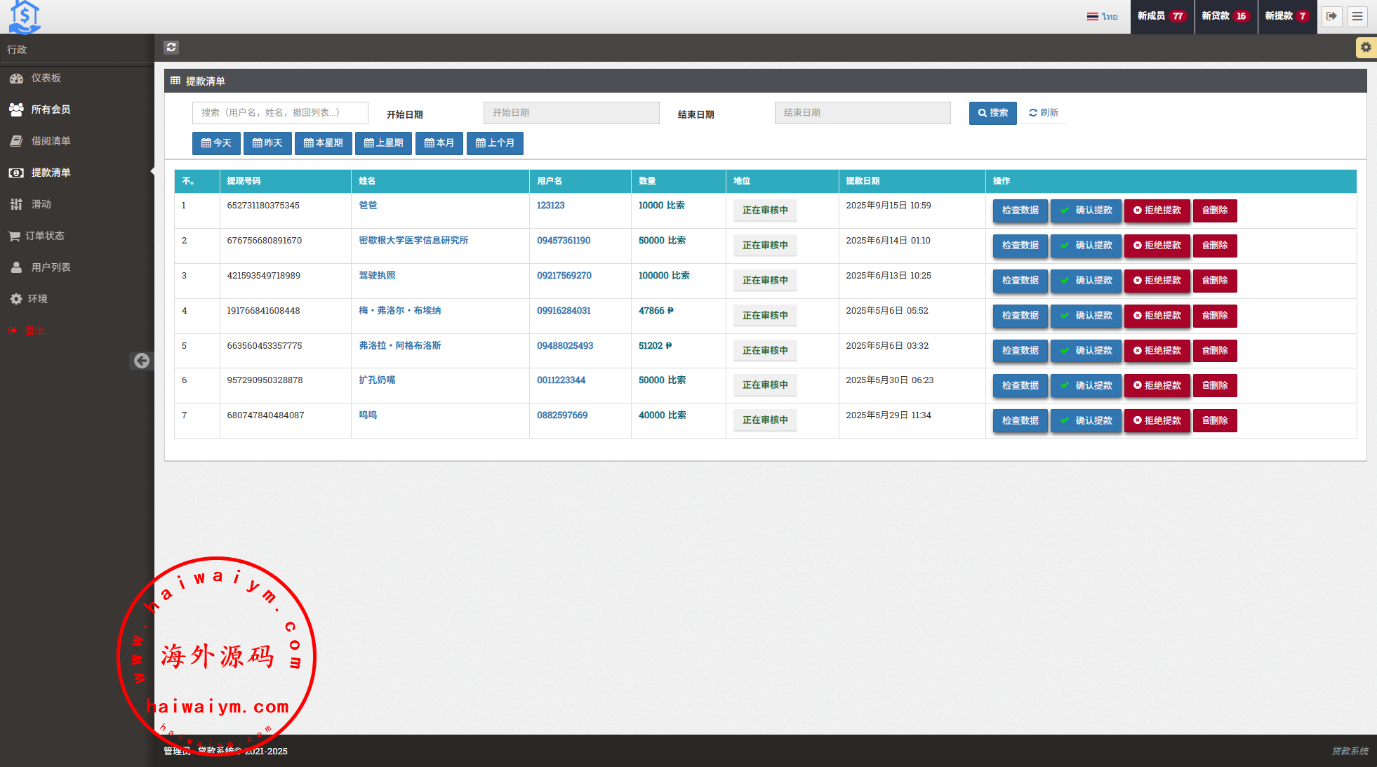 泰语小额贷款系统/泰国贷款源码/海外套路贷/贷款平台源码
