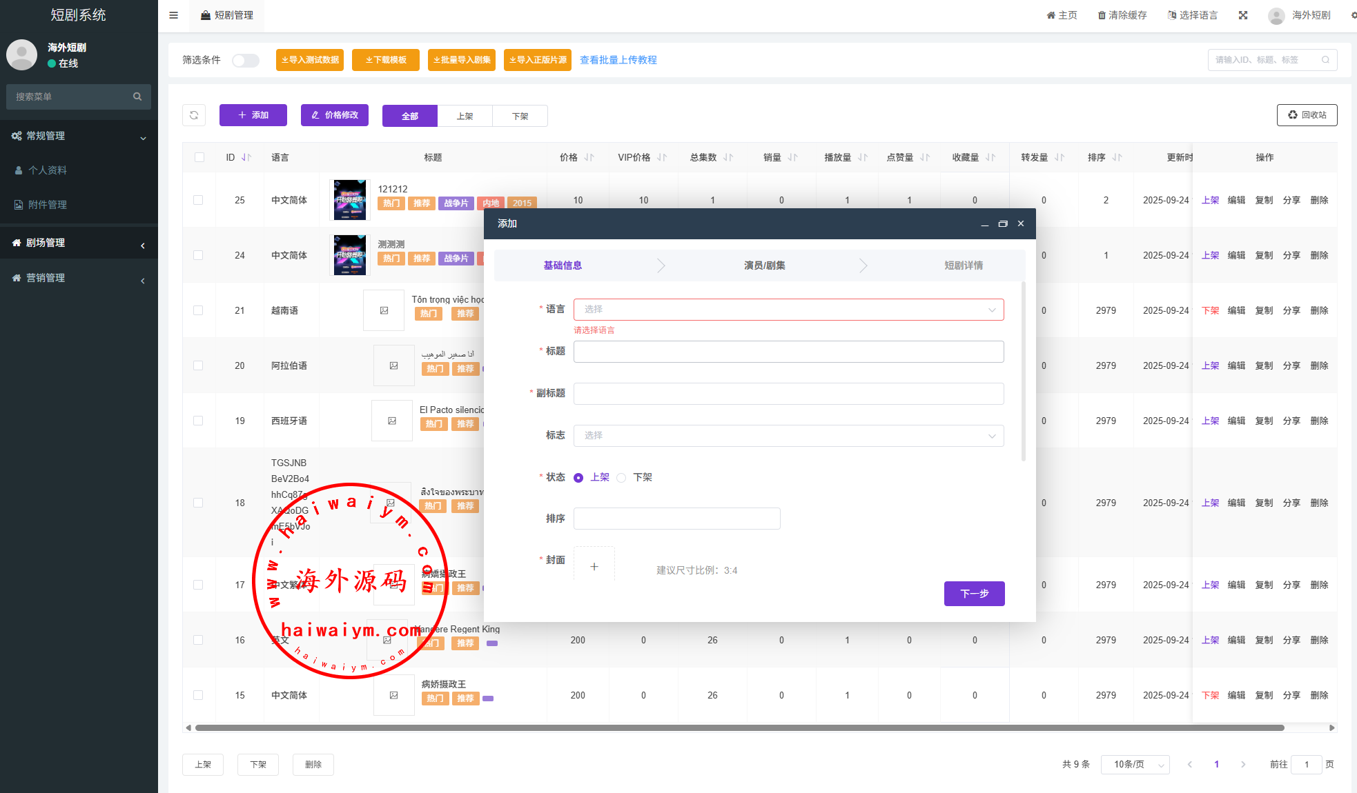 多语言海外短剧集收费系统前端uniapp开发,后端php带教程跟前端源码