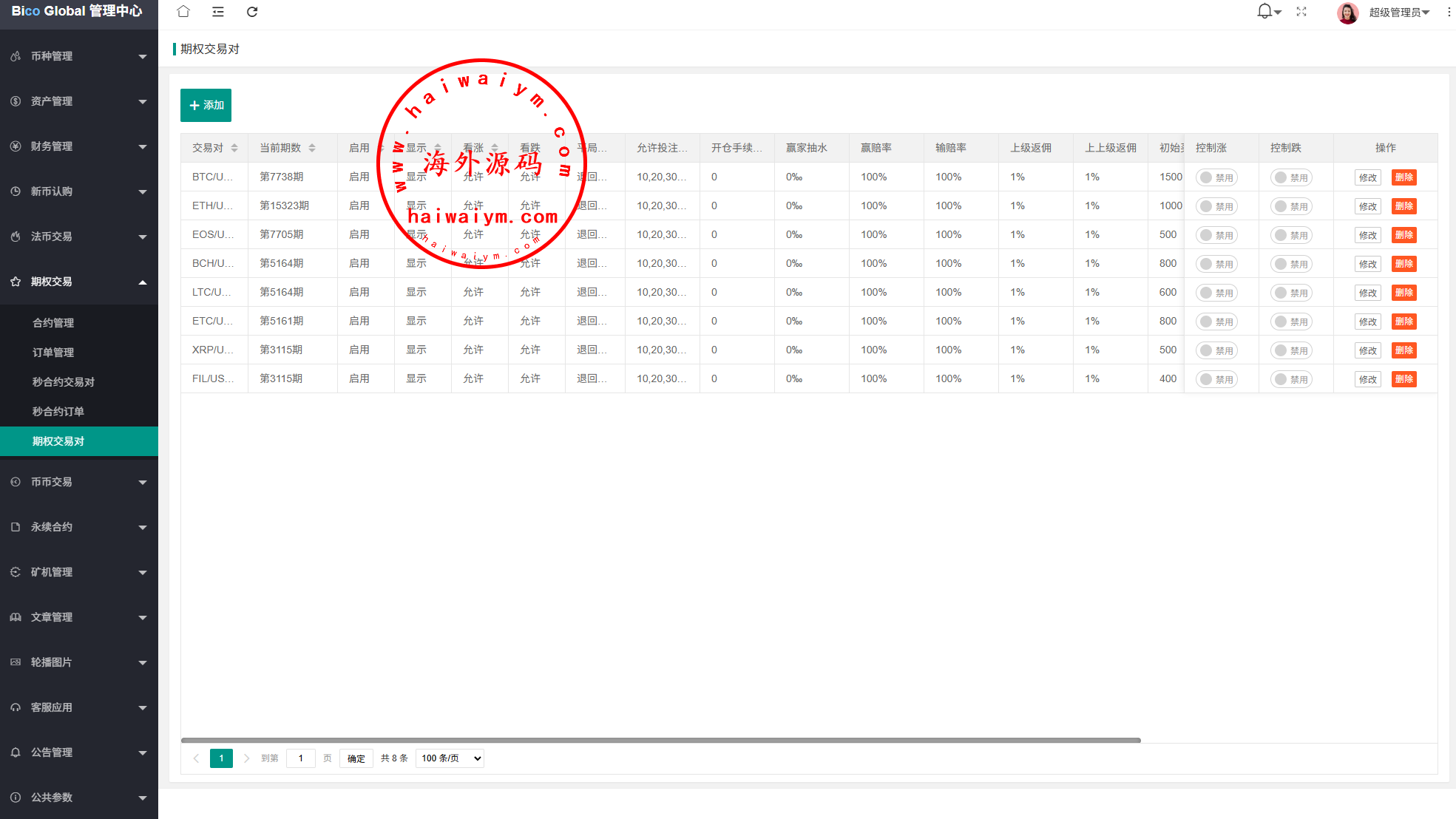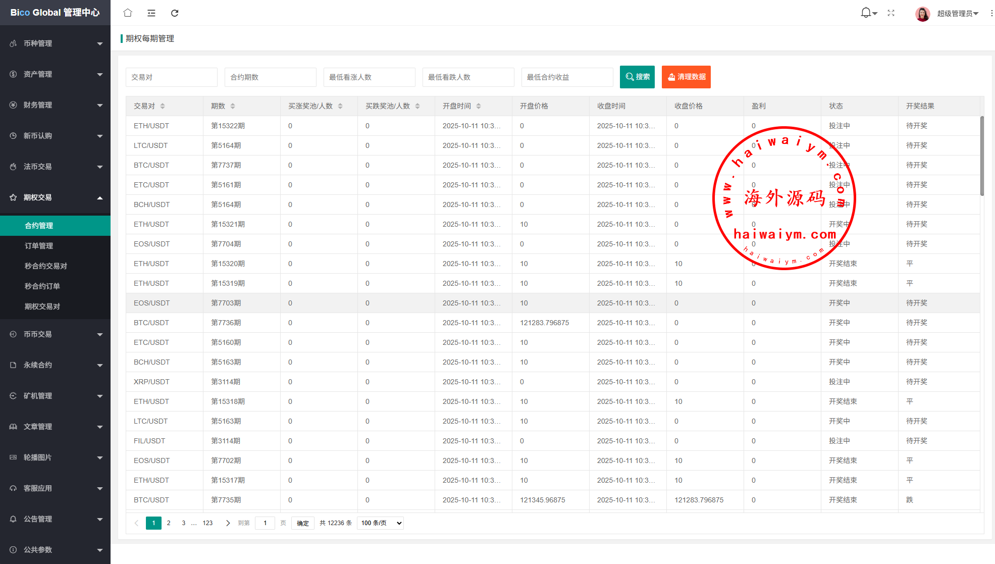 海外交易所系统/合约/期权/质押/秒合约/插针控制/申购