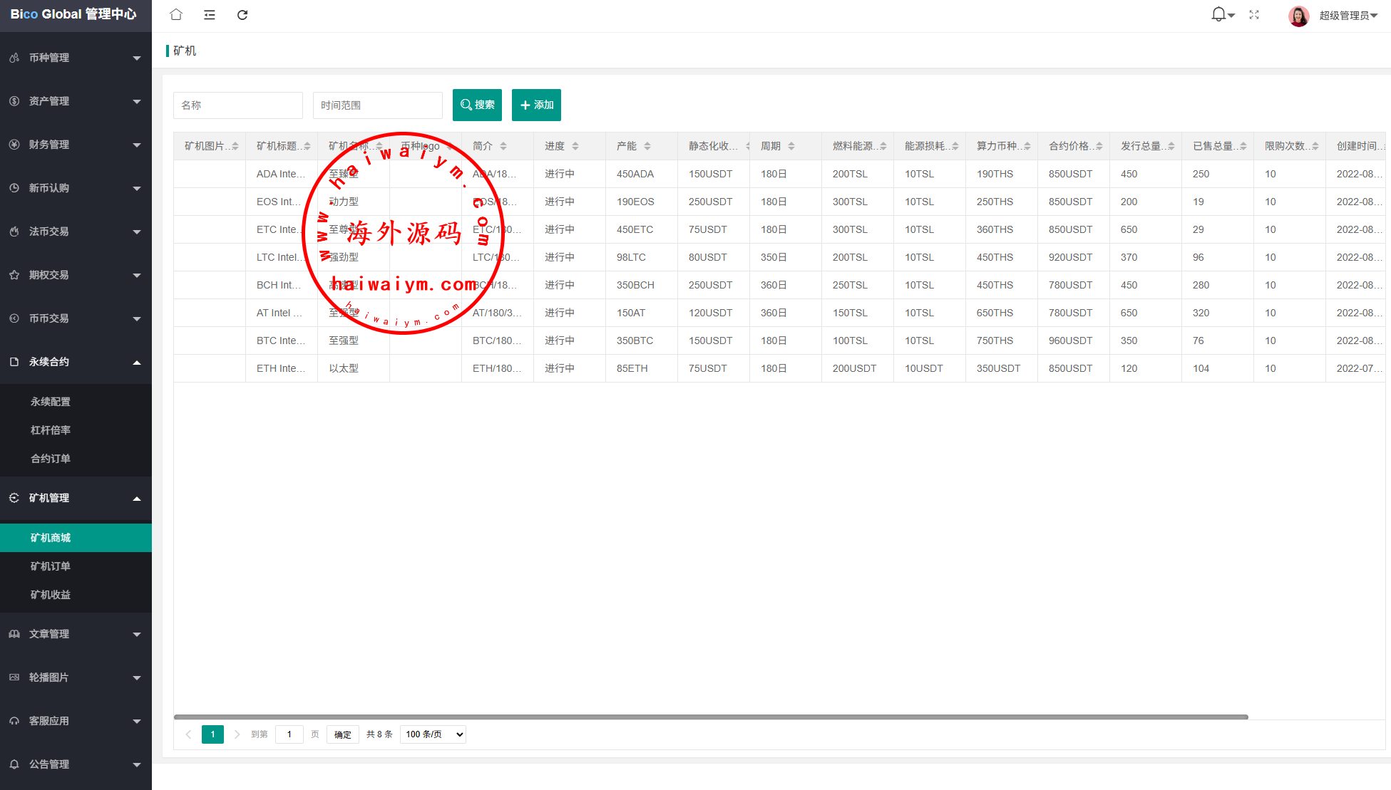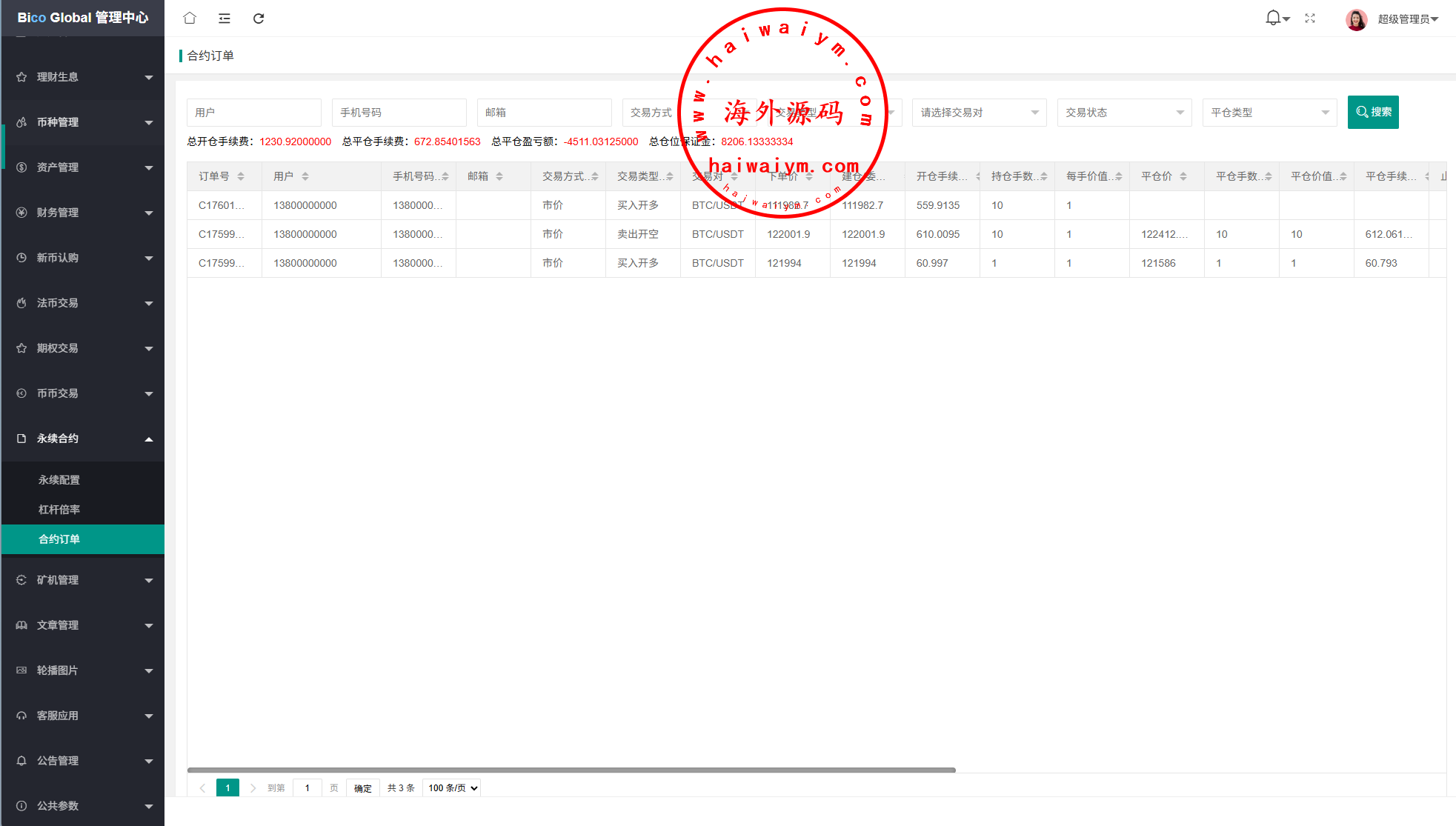 系统功能:永续合约,期权合约,秒合约,平台币,矿机质押,