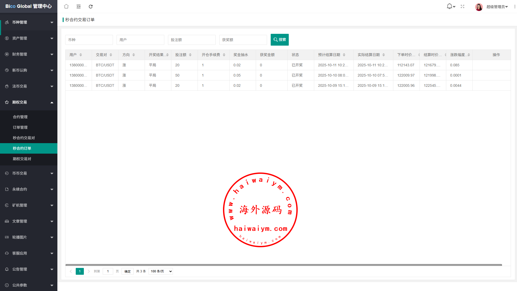 海外多语言交易所/合约/期权/秒合约/插针控制/申购