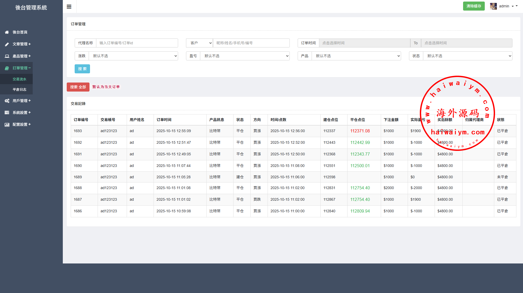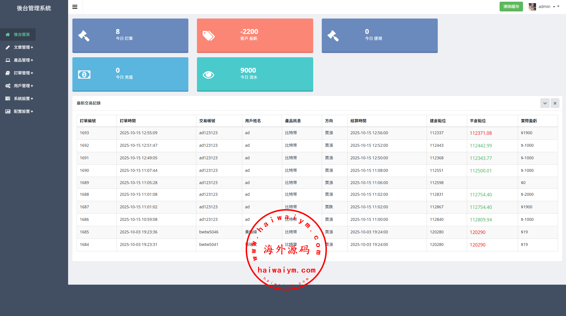 海外交易所系统/秒合约/杠杆交易/投资/K线控制