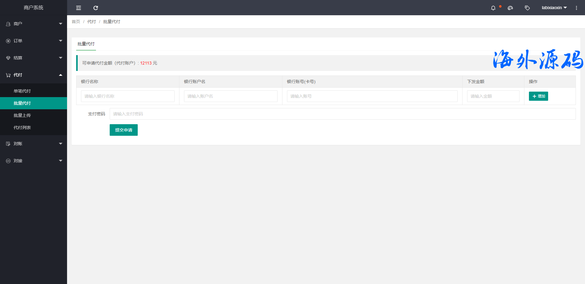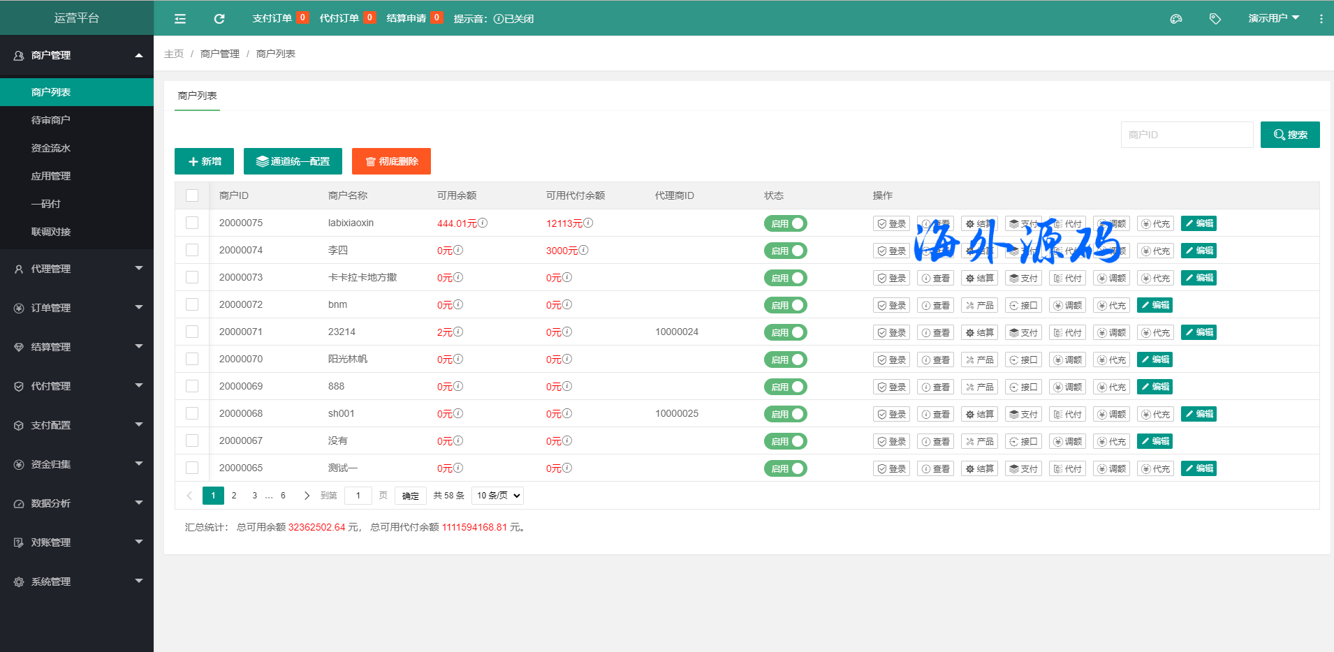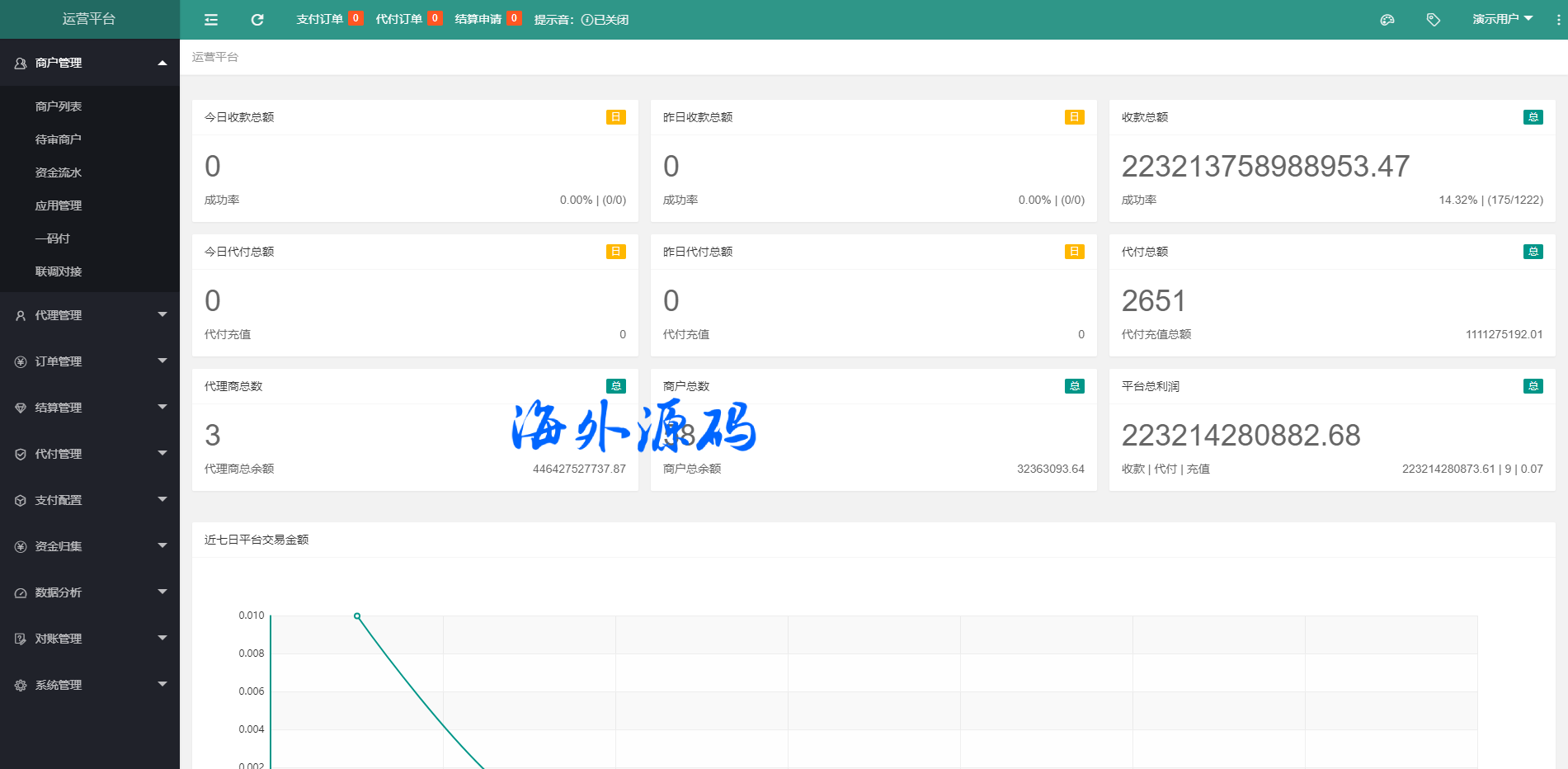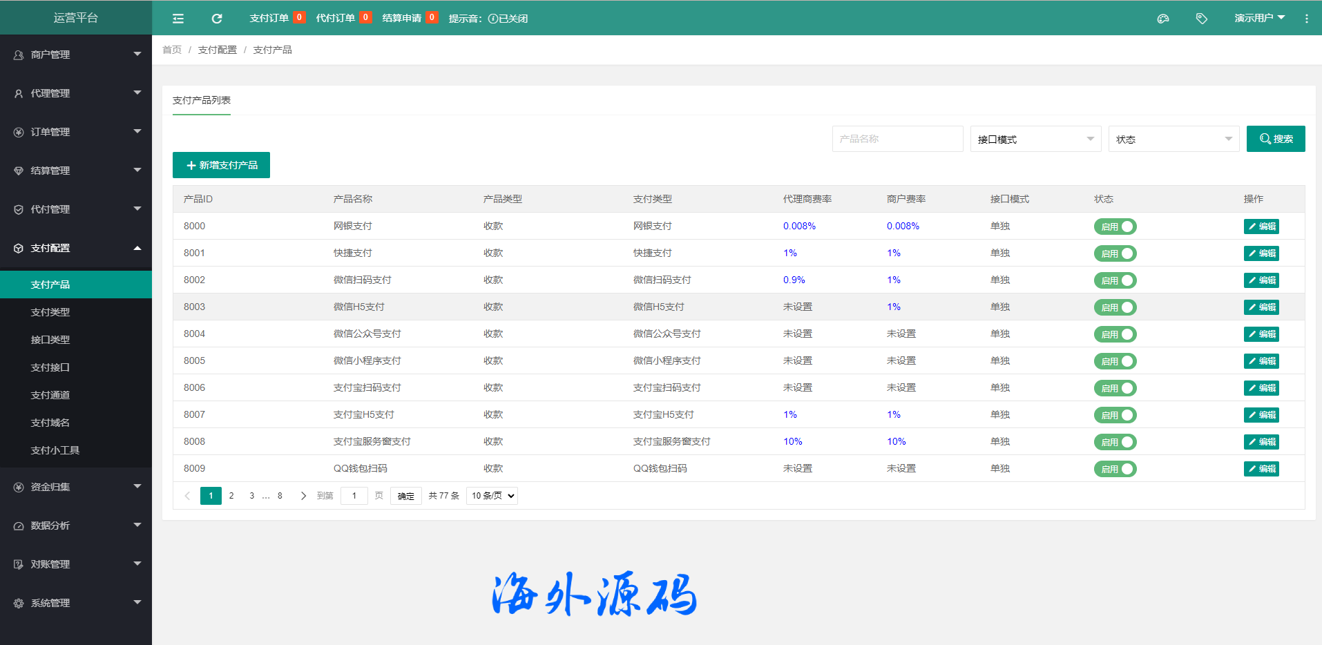 支付系统包括:运营后台,代理商后台,商家后台。
