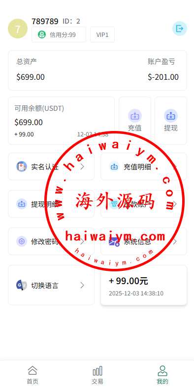 多语言虚拟币微盘系统/秒合约交易/信用分/实名认证