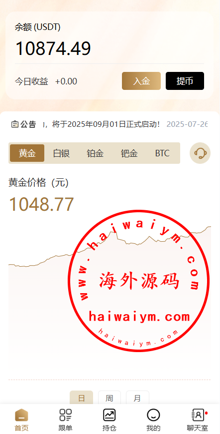 黄金投资跟单后台手动发布订单前端用户购买前端支付对接U盾,自带聊天室可设置管理员跟发红包