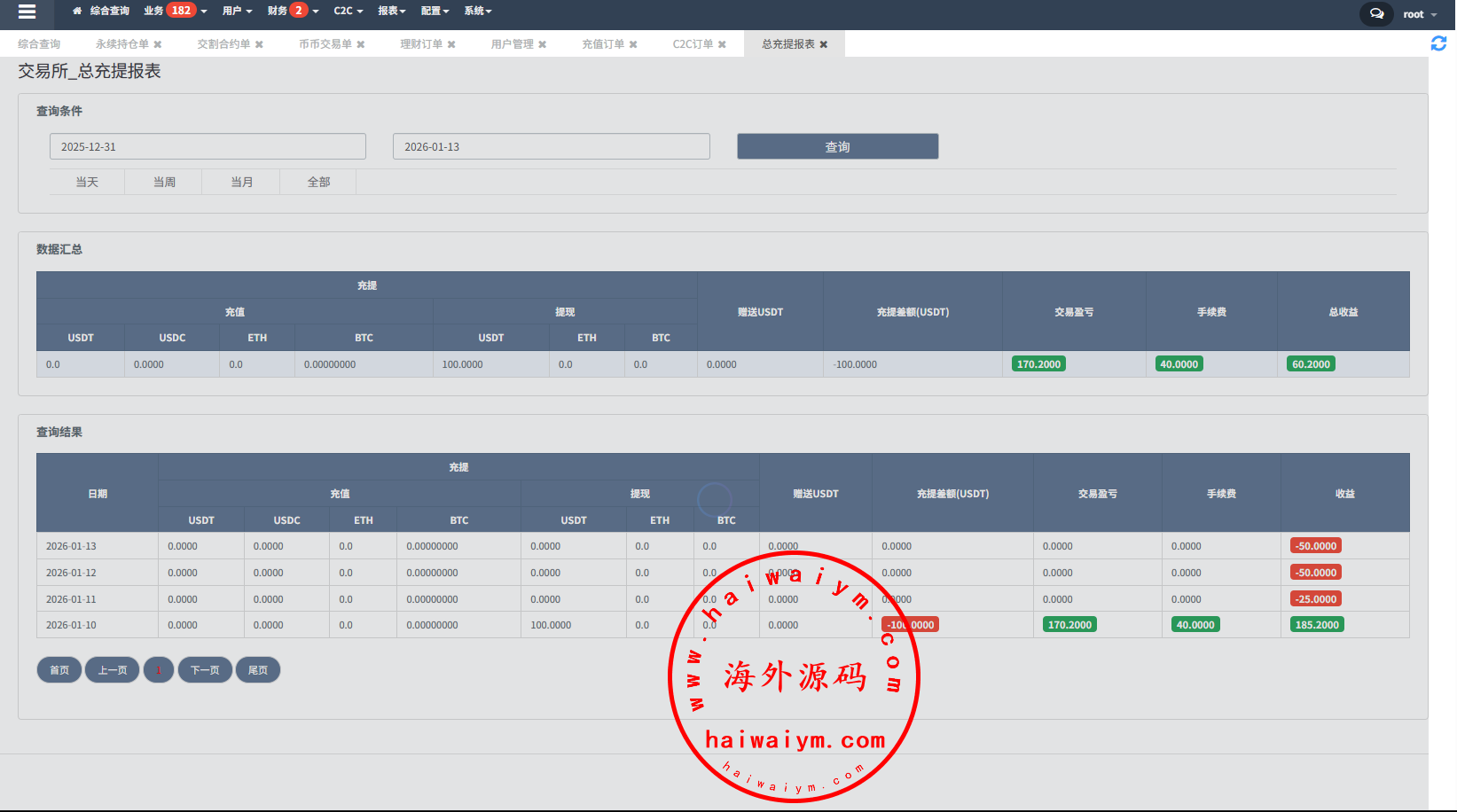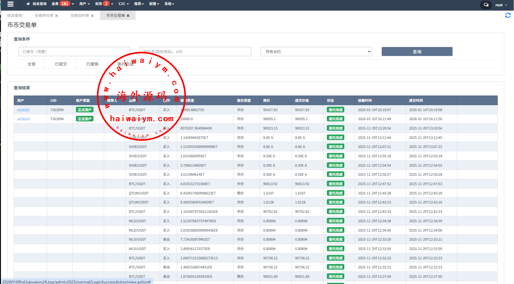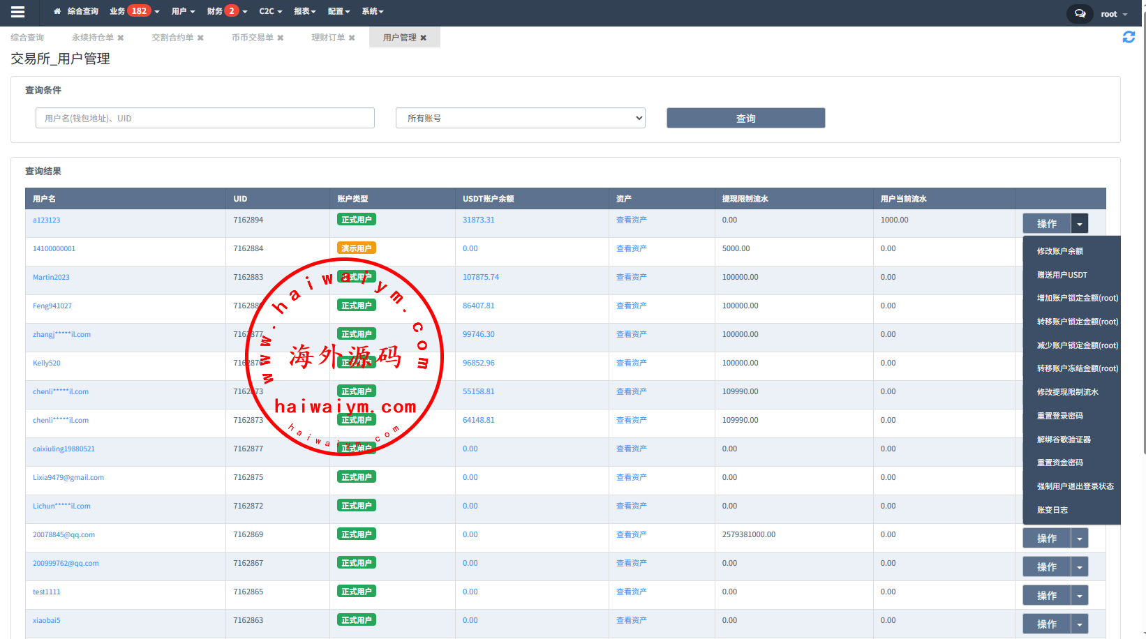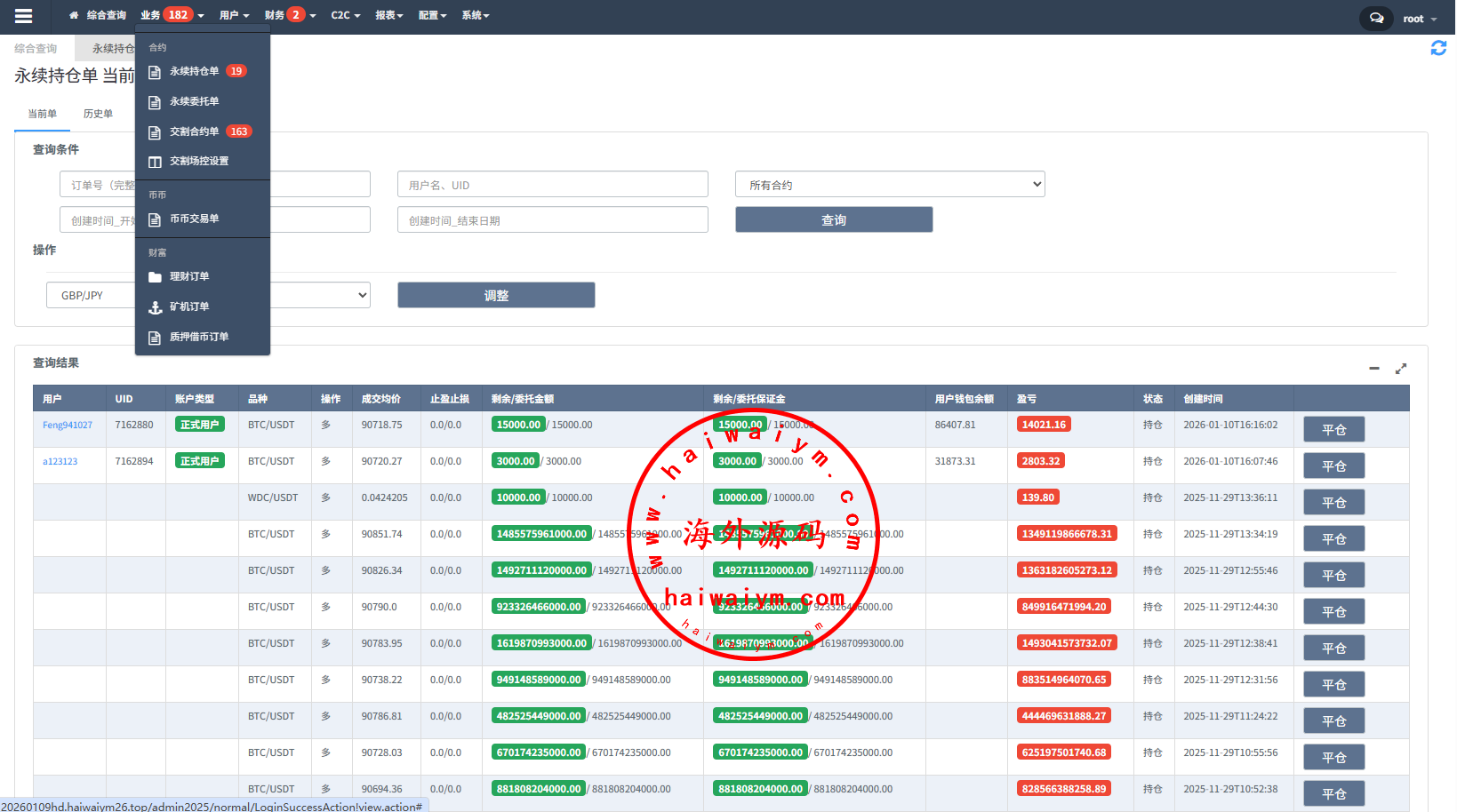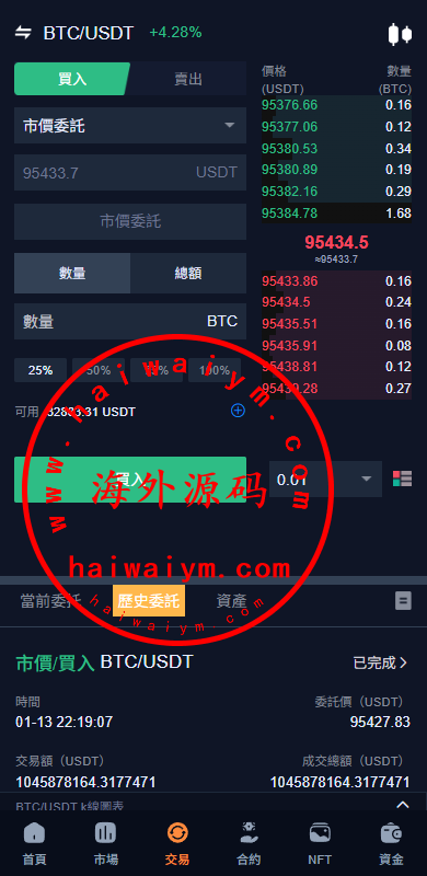 系统功能:永续合约、交割合约、现货交易、理财、C2C、矿池、NFT、质押借币等功能