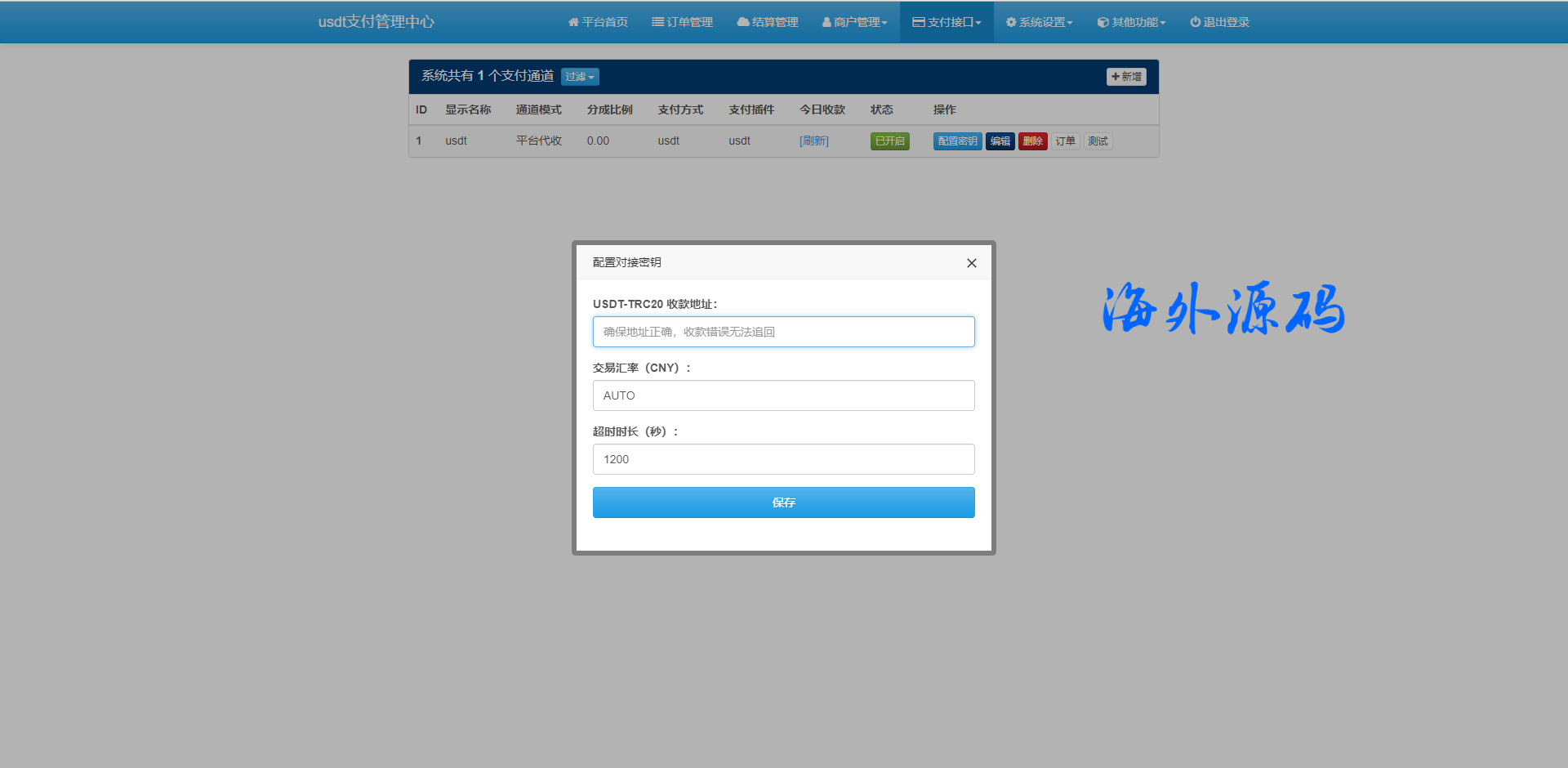 全新的USDT支付系统,源码搭建添加通道填写收款地址即可使用