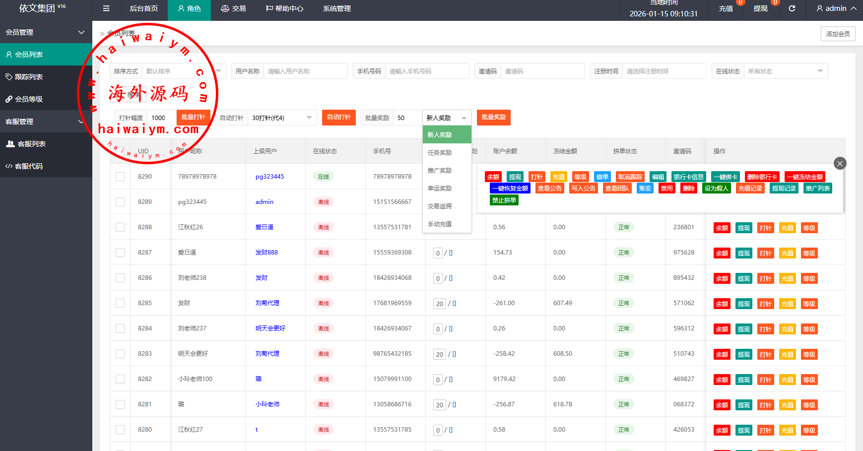 新版UI抢单刷单系统,前端可二开多语言批量打针,批量奖励,信誉分,会员跟踪,一键冻结,一键绑卡等功能
