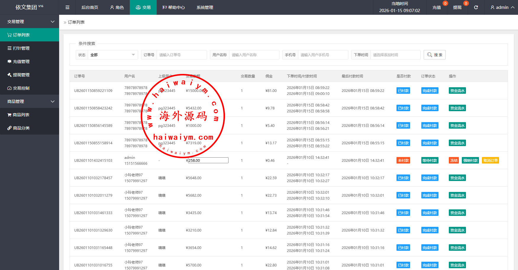 泰国抢单刷单系统/手动派单/指定派单/信用分