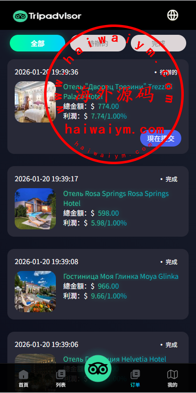 海外酒店抢单刷单系统/卡单连单/信用分/前端uniapp