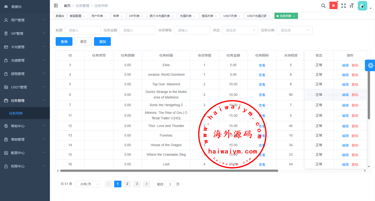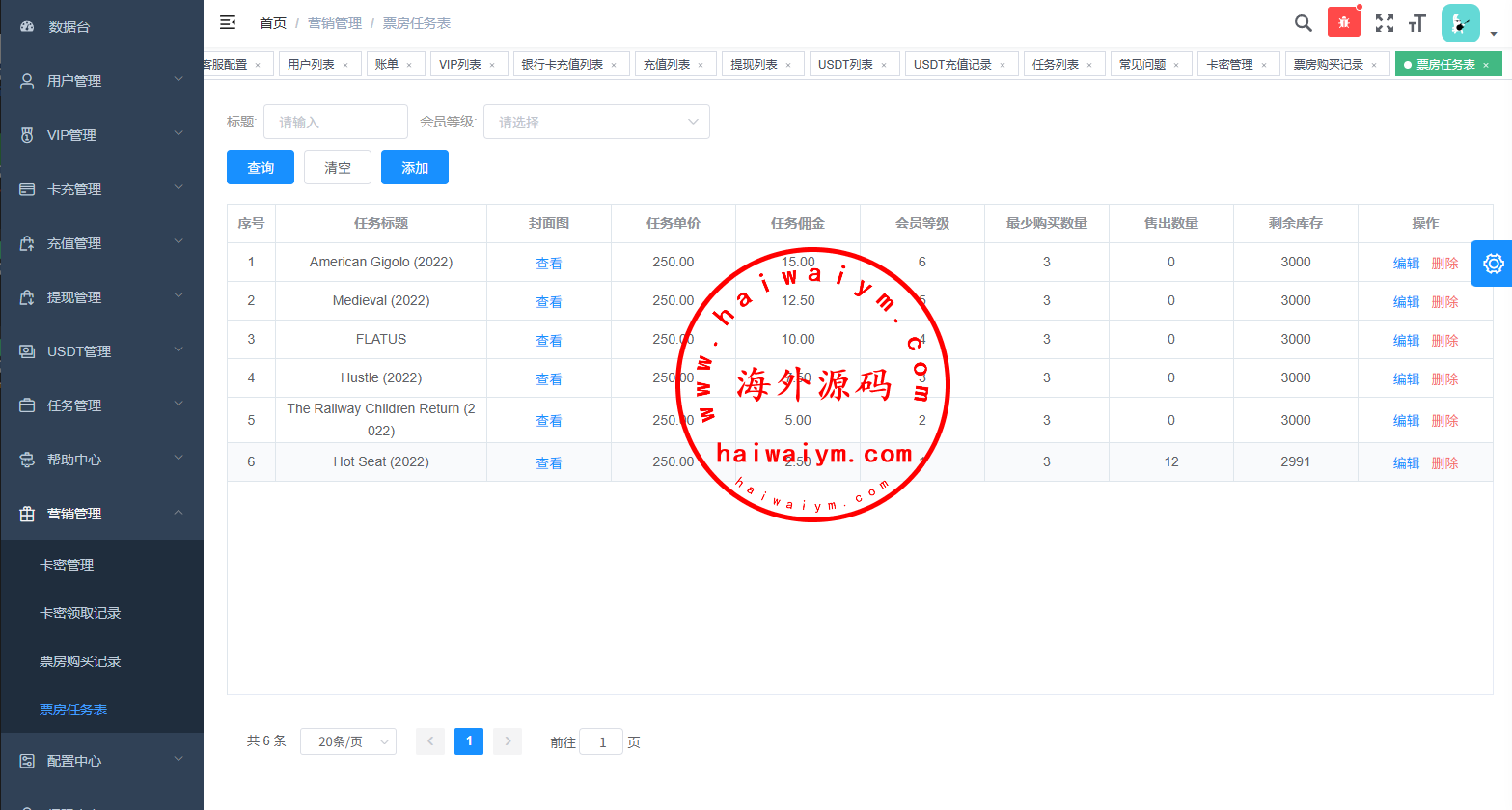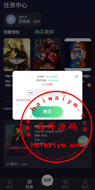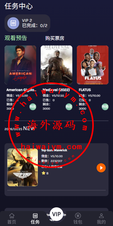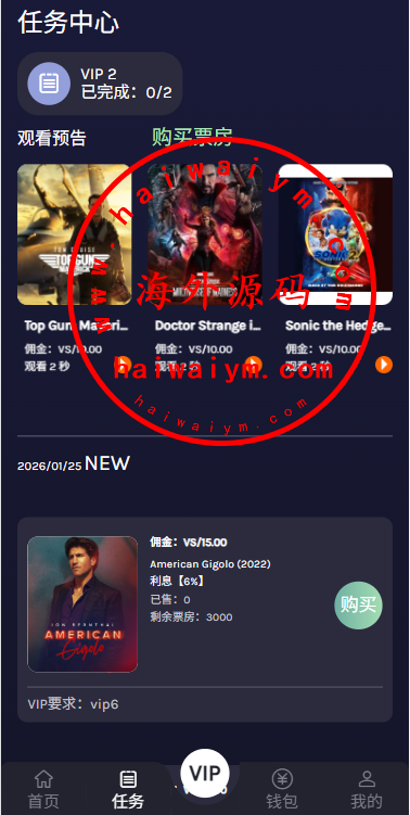 海外电影任务系统/看视频返利/电影视频投资刷单源码