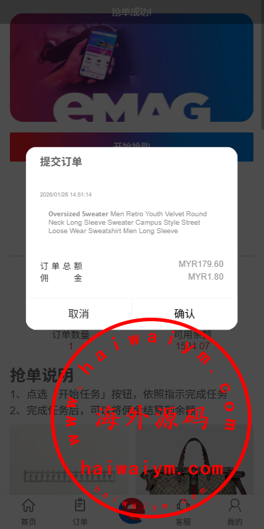 海外奢饰品抢单刷单系统/卡单连单/信誉分/海外刷单