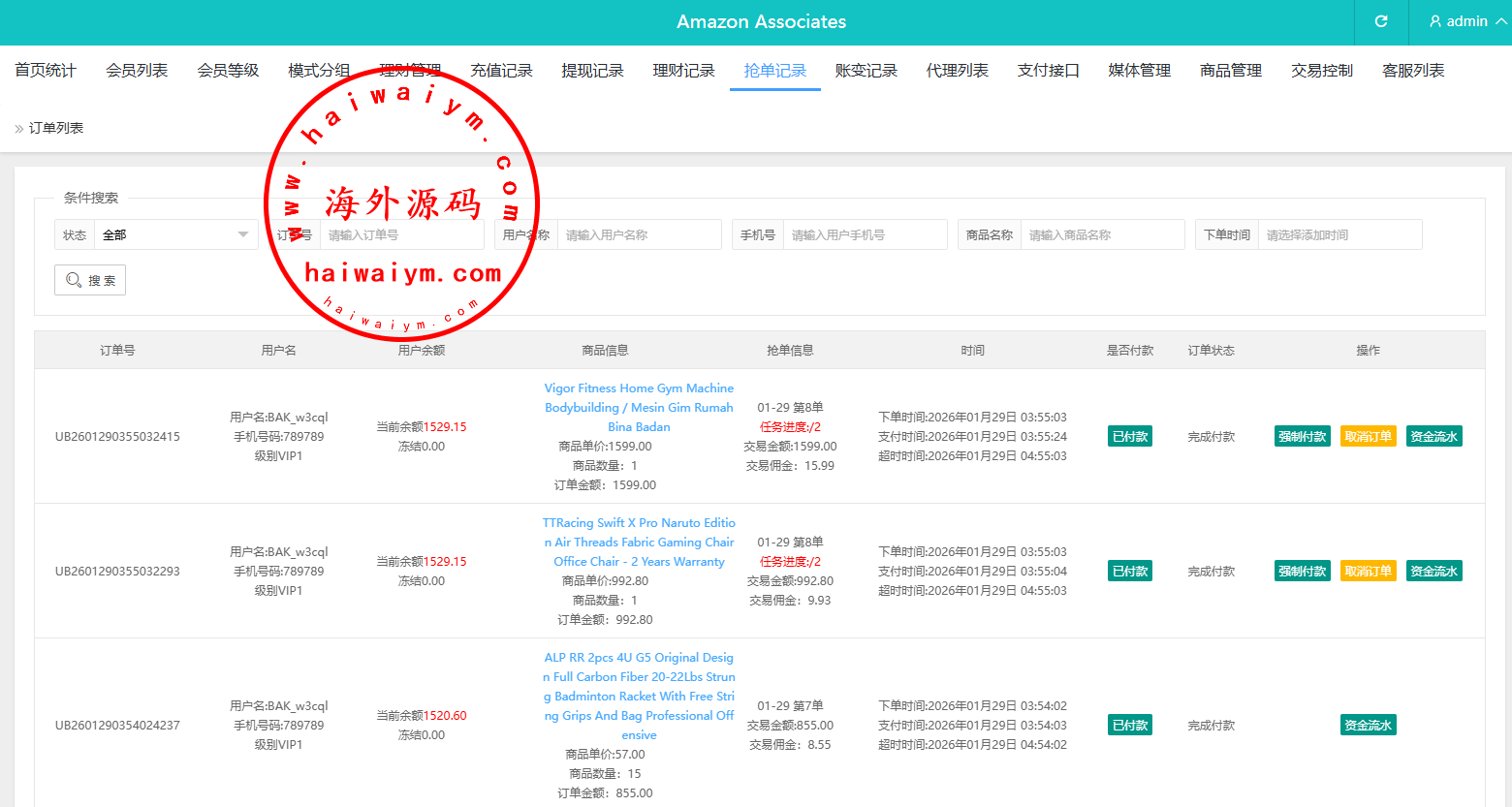 运营版抢单刷单系统/打针/做单/会员跟踪/信誉分