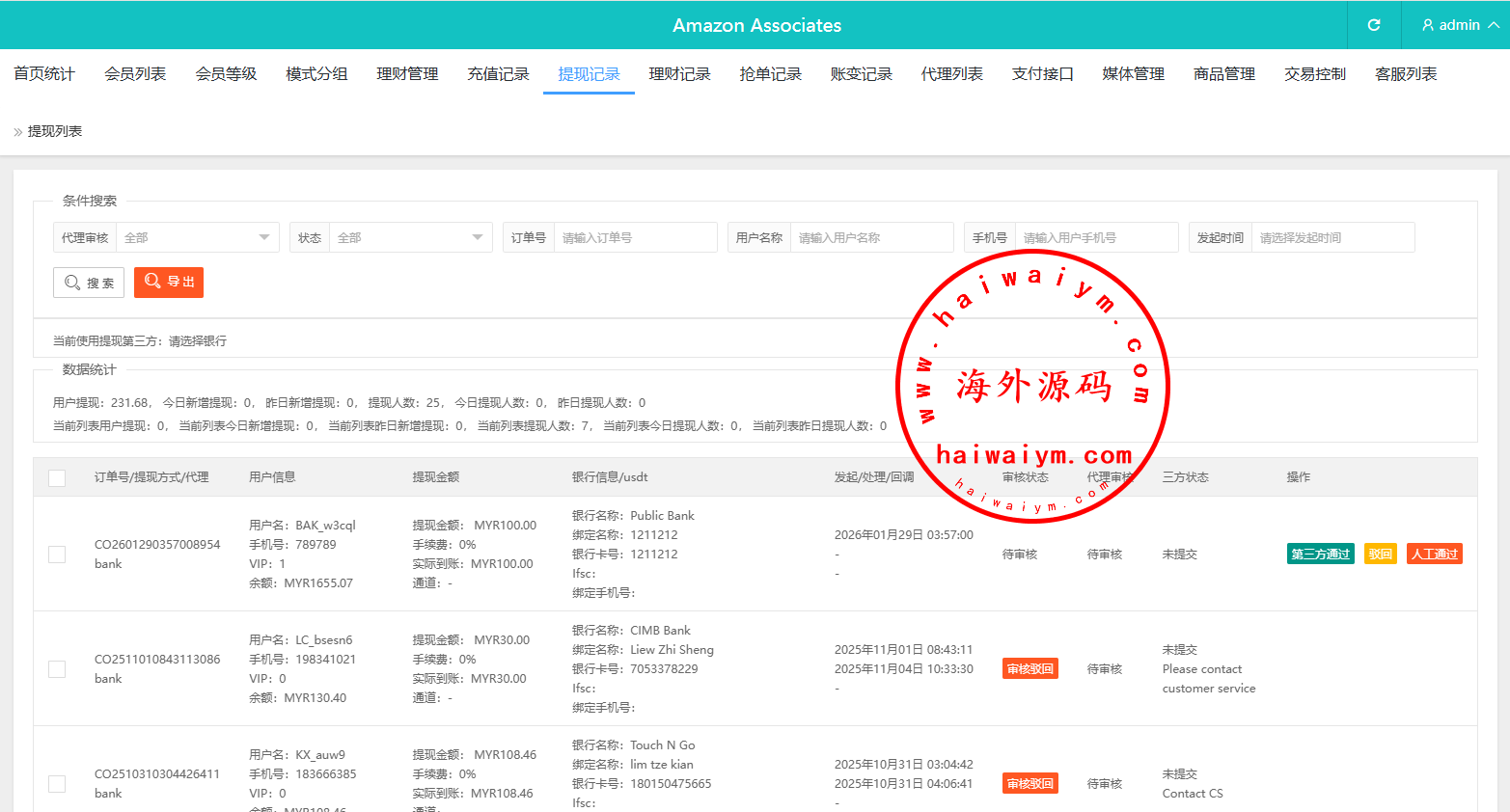 泰国抢单刷单系统/手动派单/指定派单/信用分