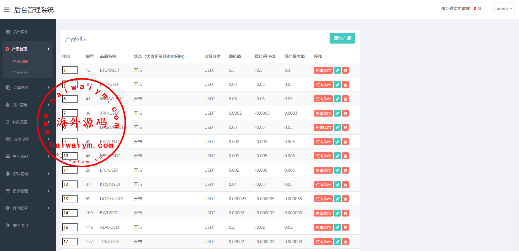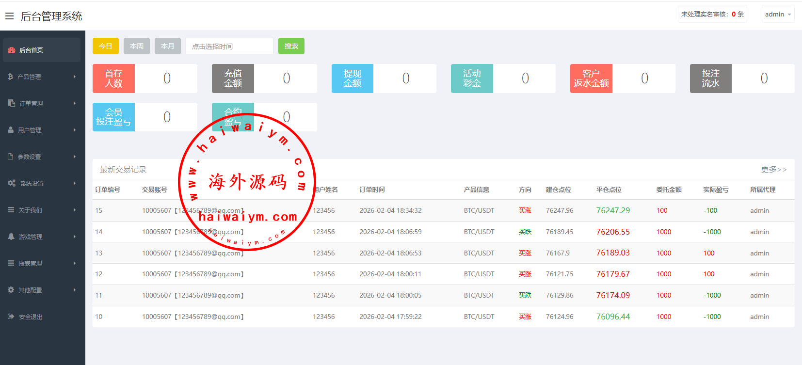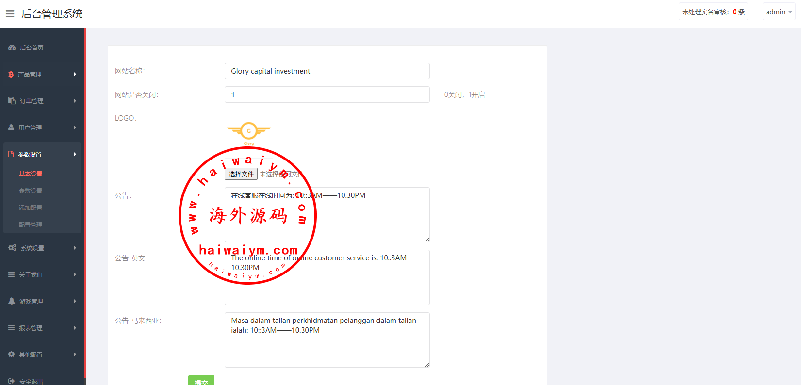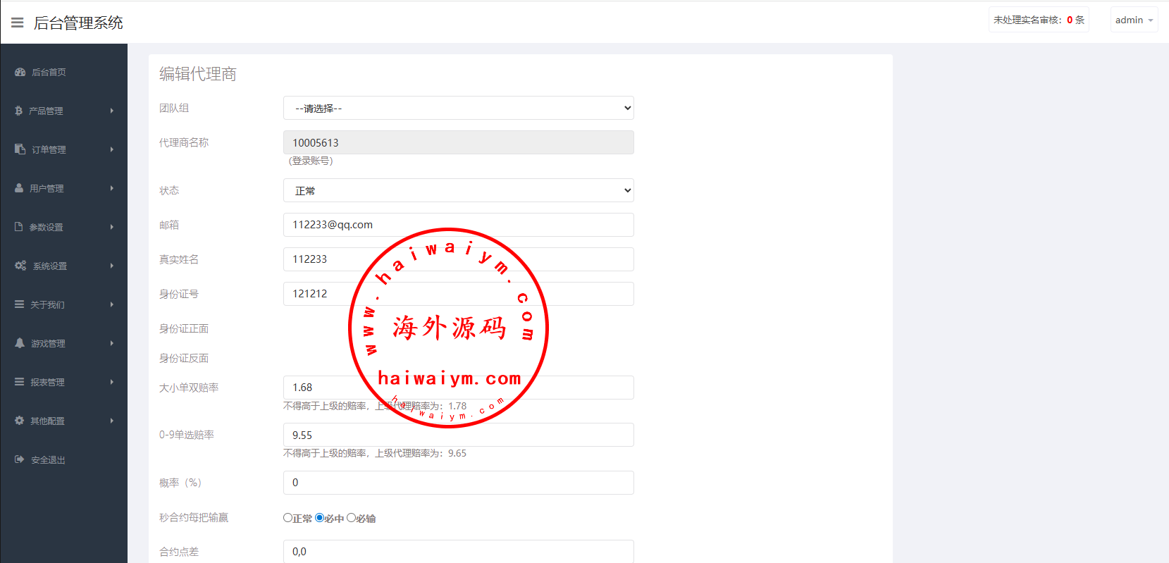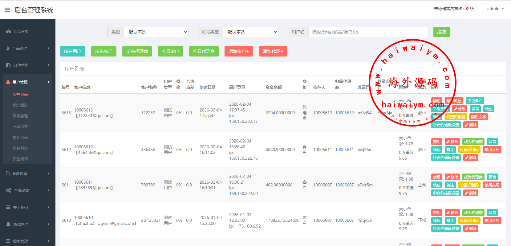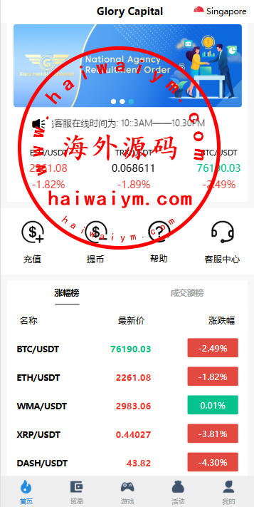 支持代理推广,实名认证,自带在线客服等功能