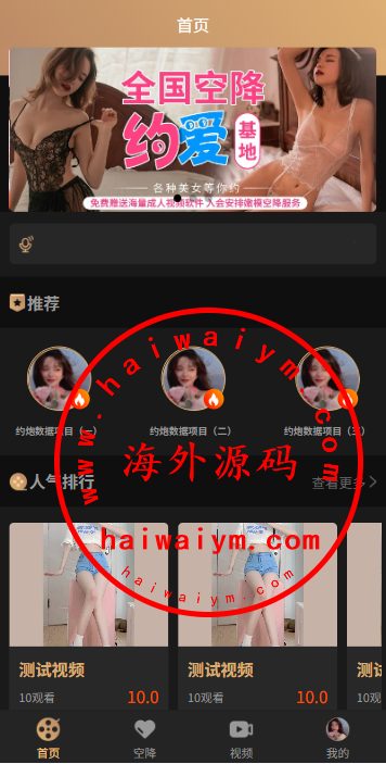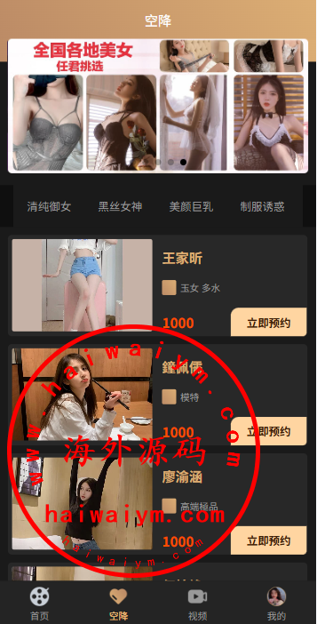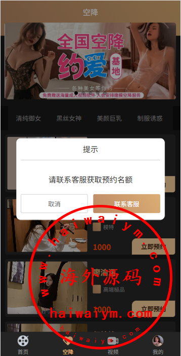 新UI空降同城约炮系统/空降任务系统彩/带预设/前端vue