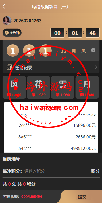 黑色空降系统/同城约炮任务/系统彩/前端VUE