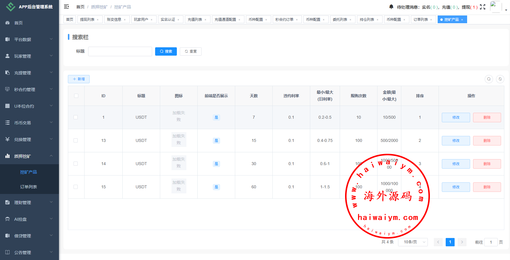 币币、合约、秒合约、质押、助力贷、理财、行情控制等功能手机vue,后台vue,后端java 全开源带教程虚拟币免费接口,外汇黄金是付费的接口