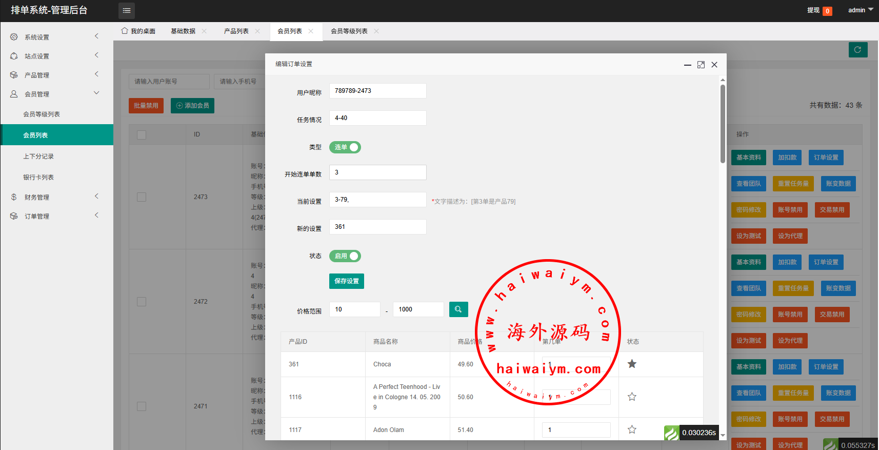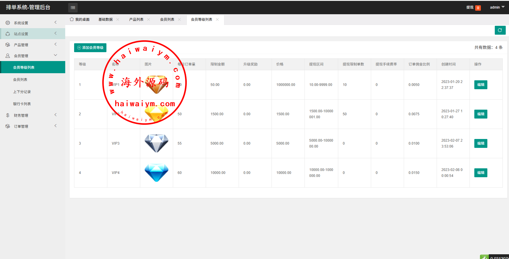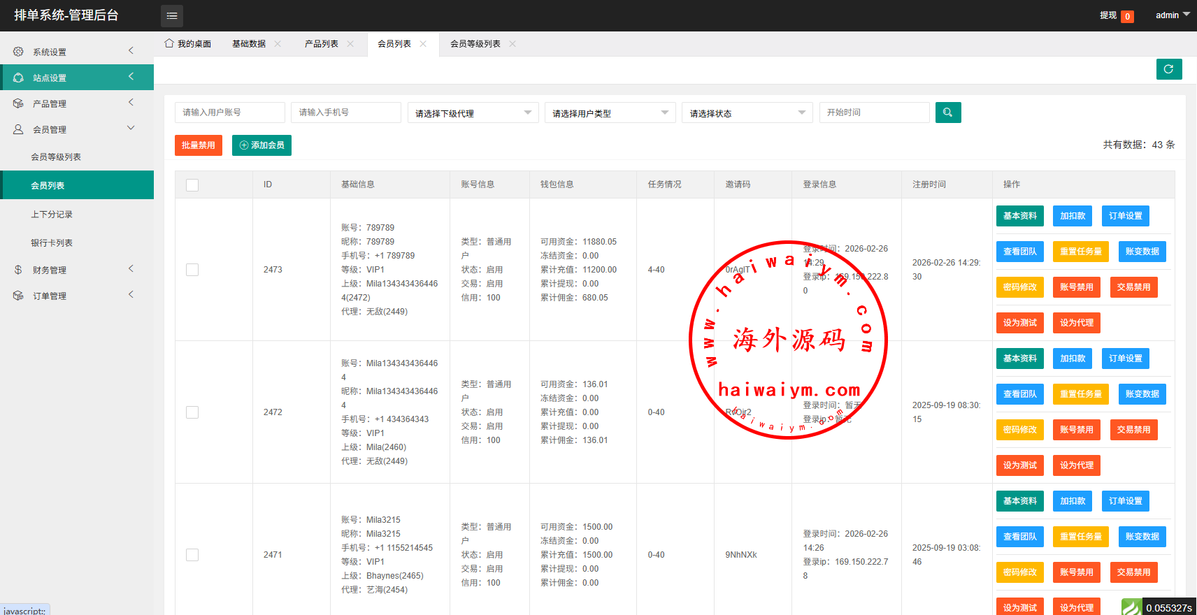 支持卡单,代理后台,信用分等功能