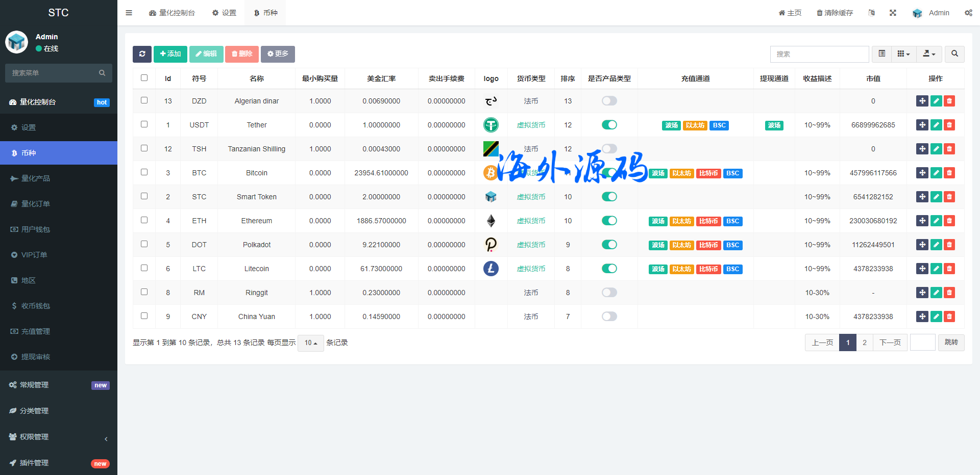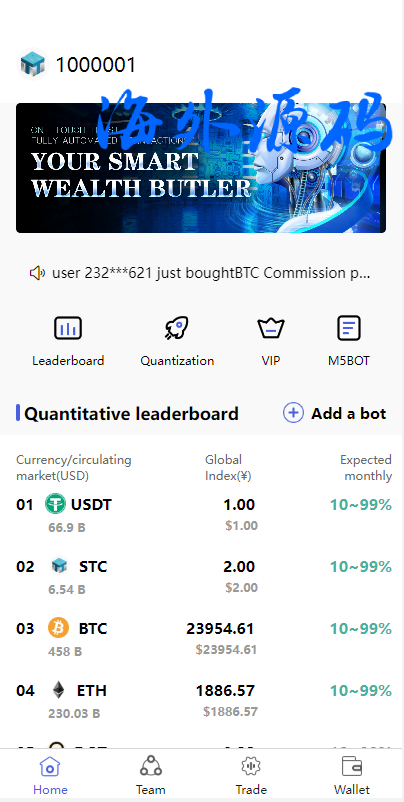 多语言虚拟币量化投资系统/海外币种投资/前端vue