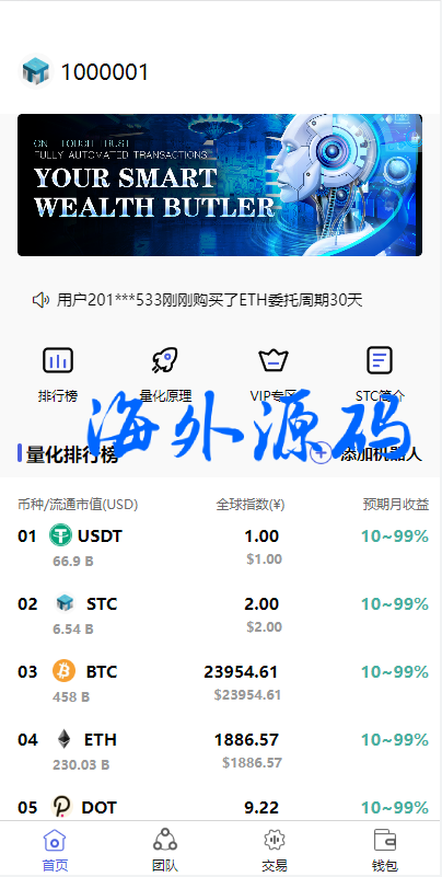 运营版量化机器人/虚拟币投资理财源码/PC落地页/前端vue