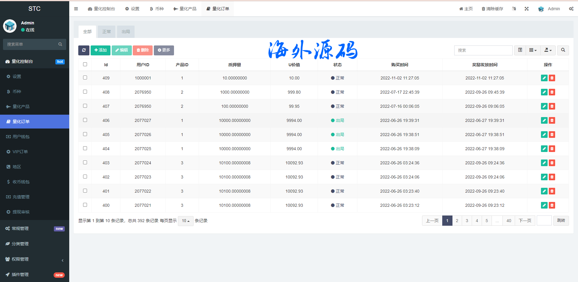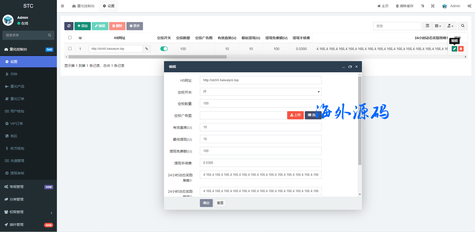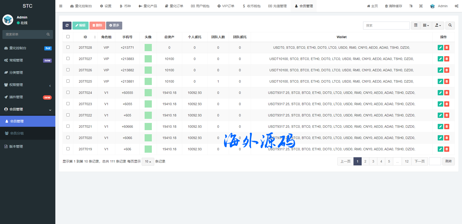 全新开发的区块链量化交易系统,前端uinapp可生成原生app,后端fastadmin框架,接口端是nodejs