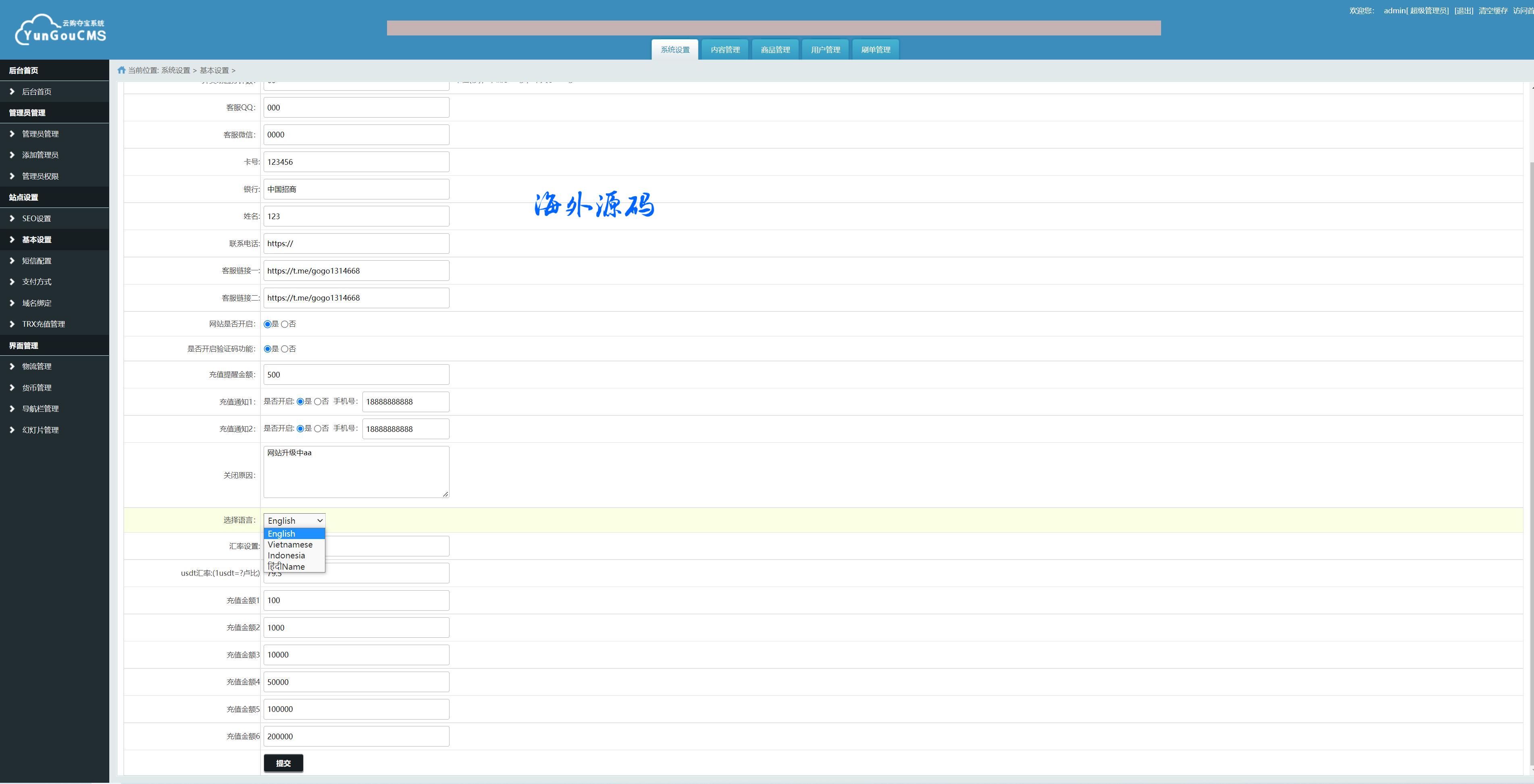 前端新增四种语言,支持任意切换,后台设置默认语言
